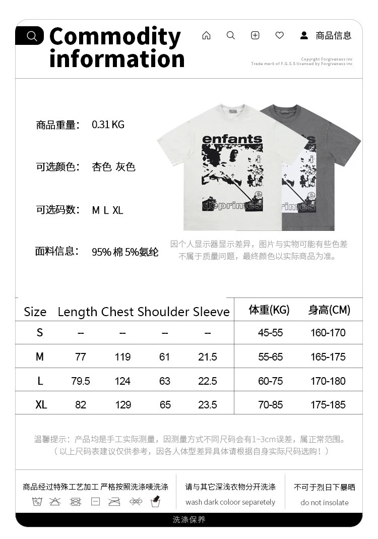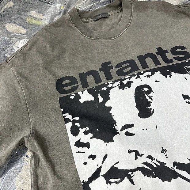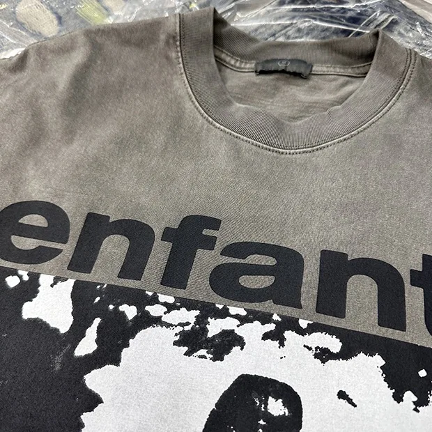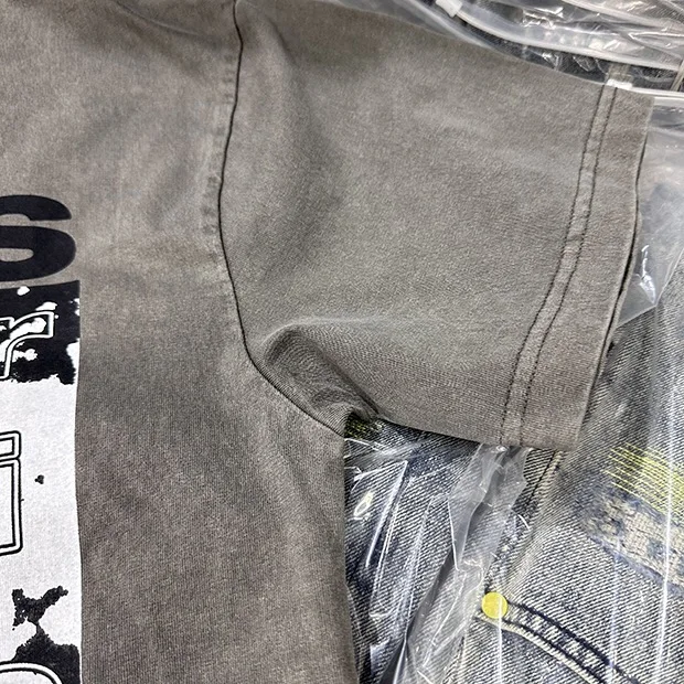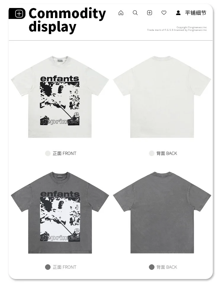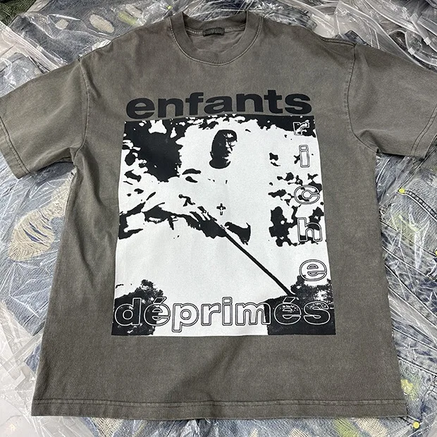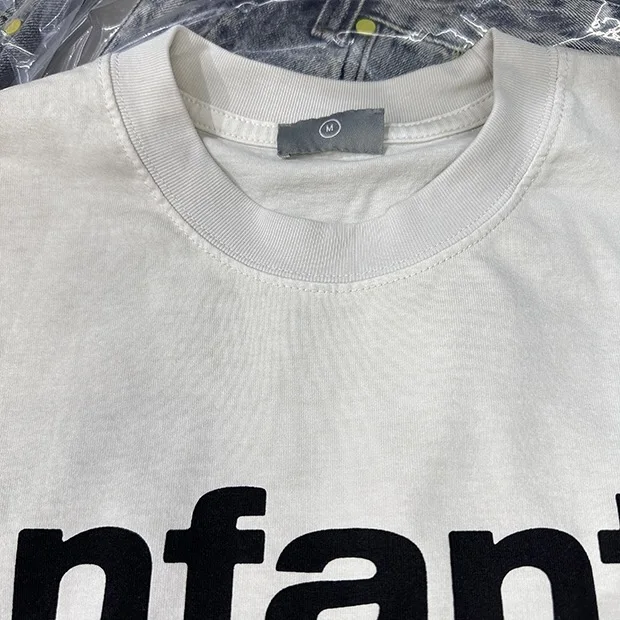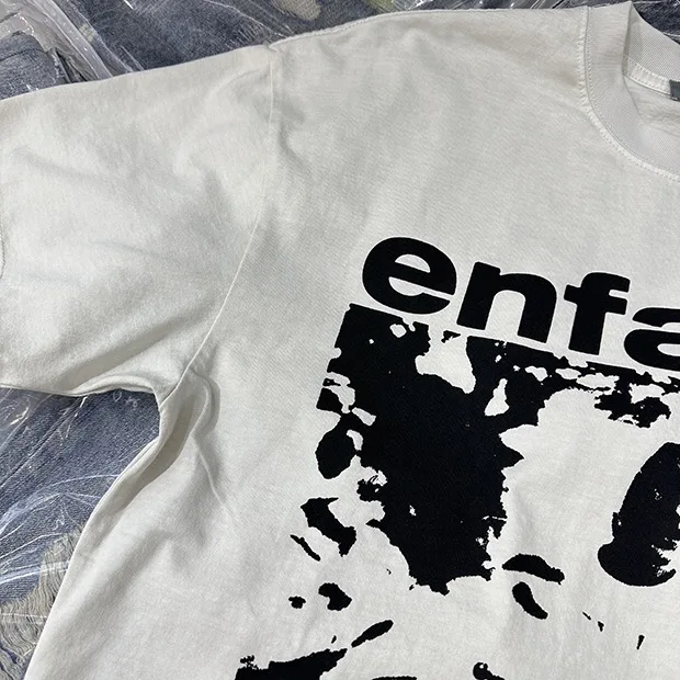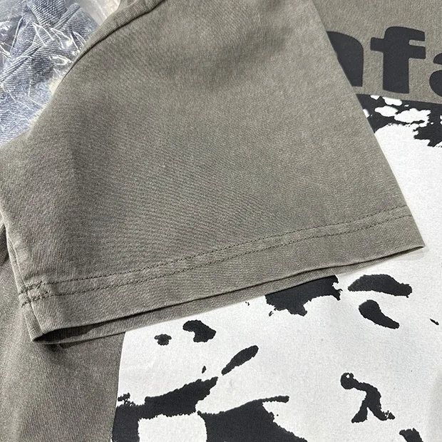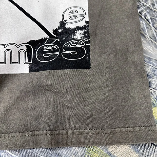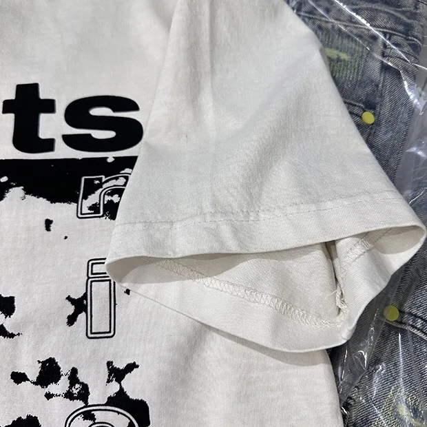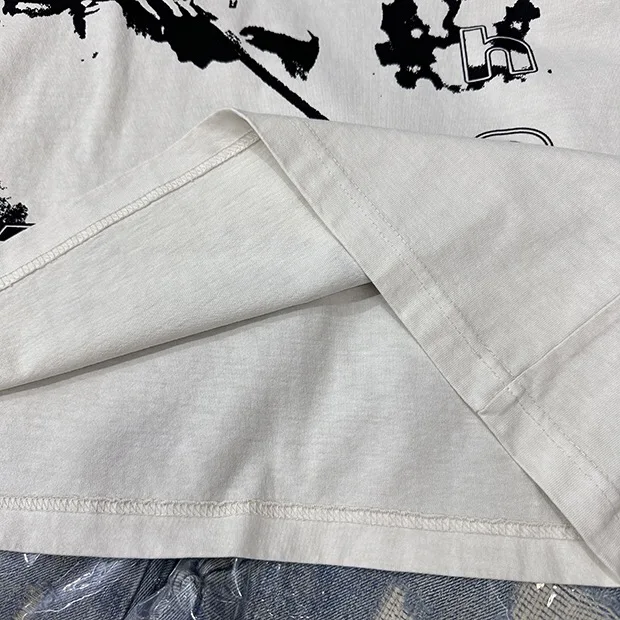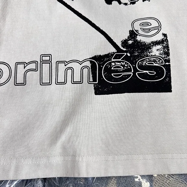 Summer cotton Korean letter printed T shirt American retro round neck men’s y2k casual white and gray half sleeved top