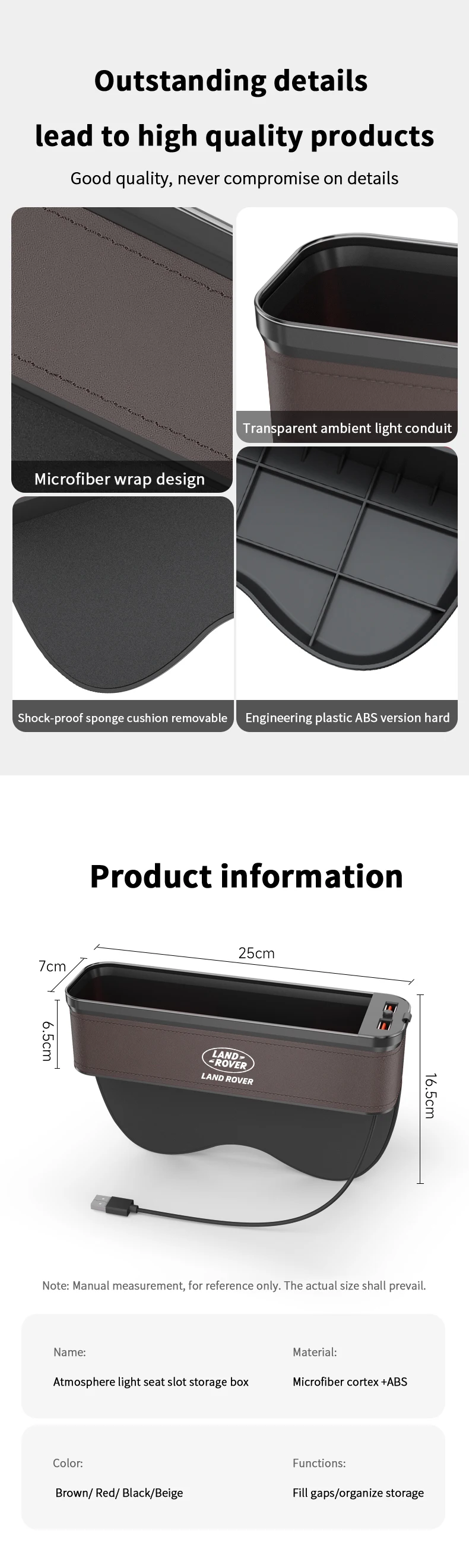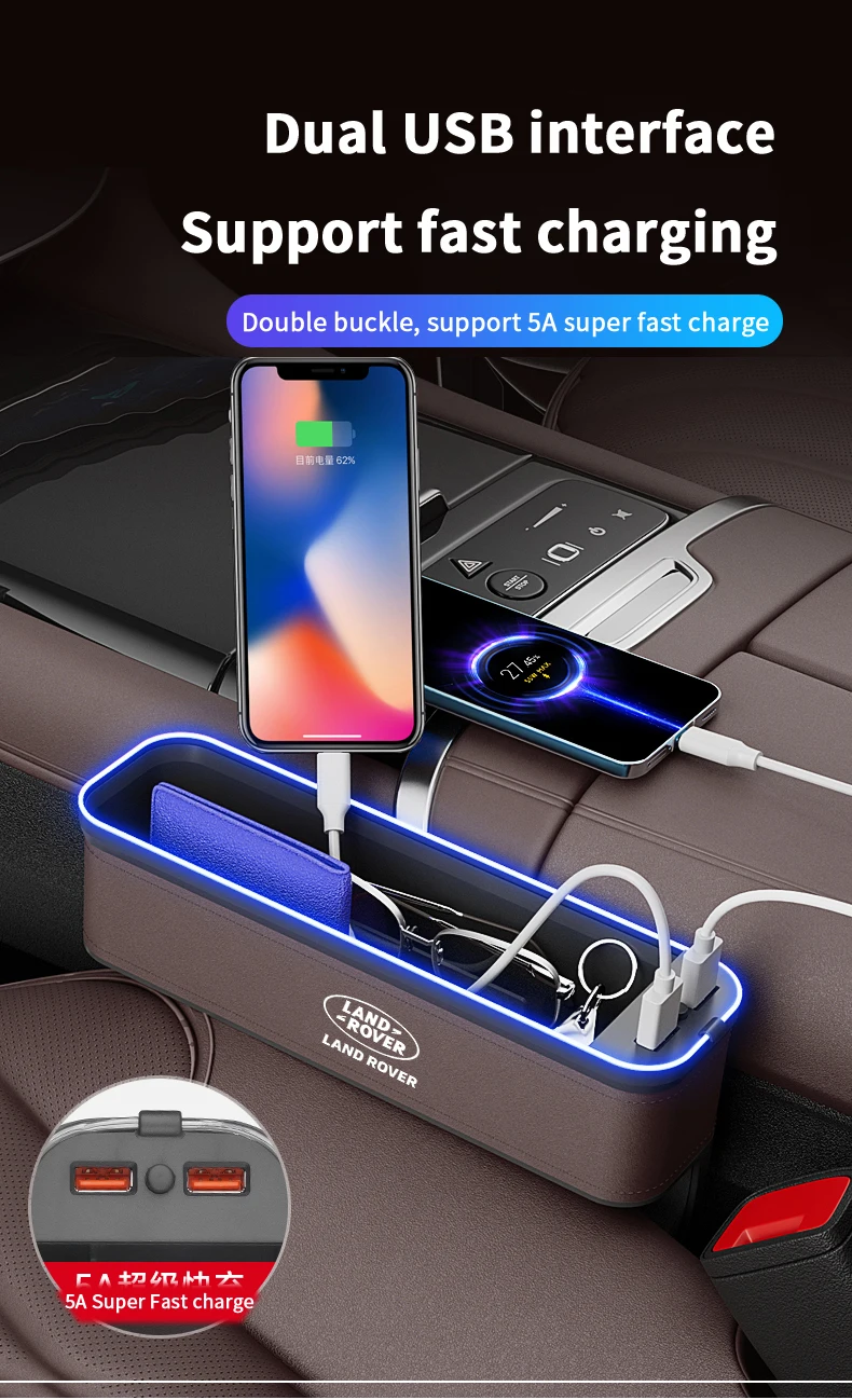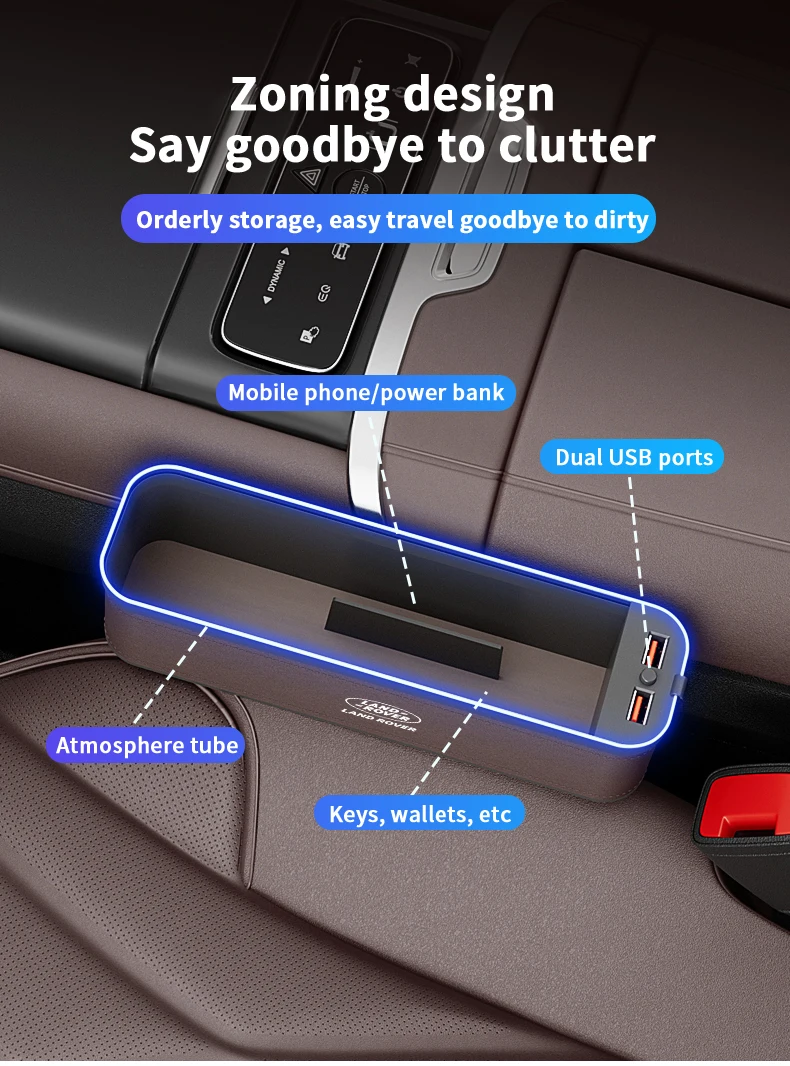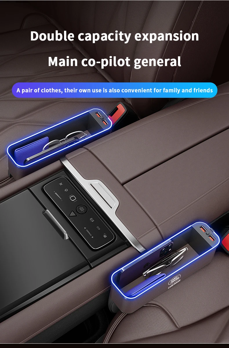 Car USB Charging Multifunction Seat Crevice Storage Box Land Rover Range Rover Sport Defender Discovery Evoque Velar Freelander