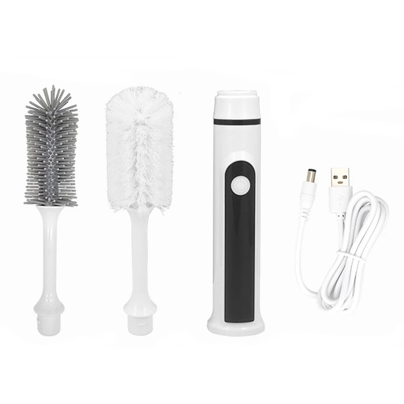 Electric Milk Bottle Brush 2 In 1 Baby Bottle Cleaning Kit Nipple Cleaner White & Gray & Black