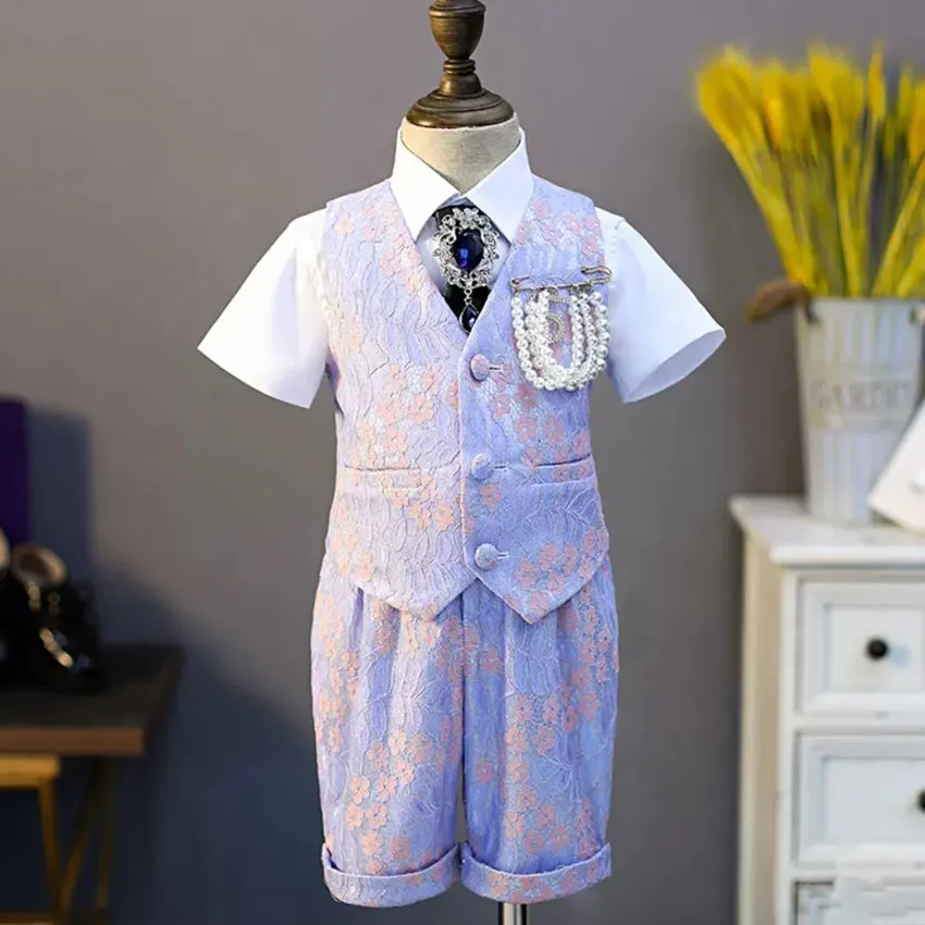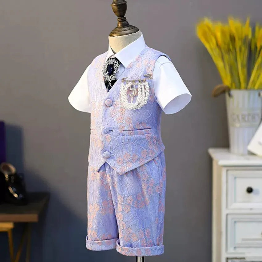 Flower Boys Formal Wedding Suit Set Children Party Host Costume Little Kids Blazer Vest Pants Clothing Sets