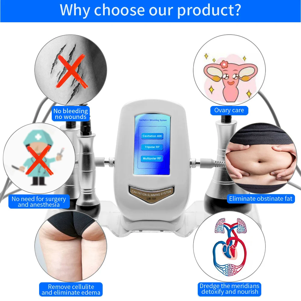 40K Cavitation Ultrasonic Body Slimming Machine Multipolar RF Skin Tighten Anti Wrinkle Beauty Device Facial Massage SkinTighten
