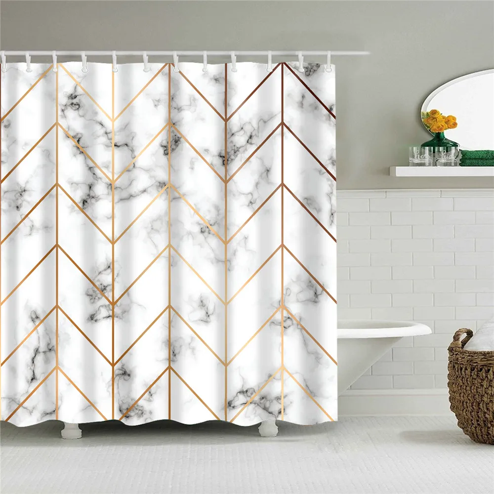Abstract Marble Shower Curtains Gold Grey Striped Modern Geometric Art Luxury Bath Curtain Polyester Fabric Bathroom Decor Sets