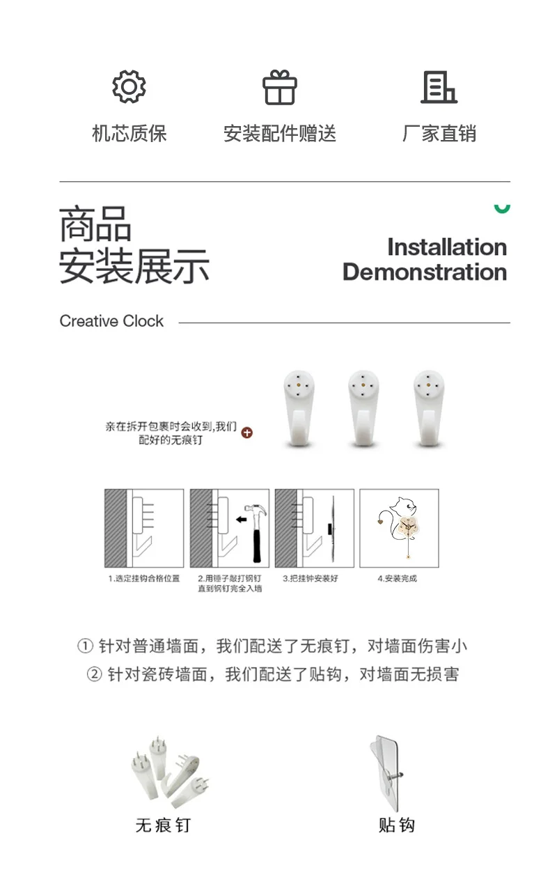 Cute Cartoon Cat Wall Clock for Kids Room and Living Room Decoration