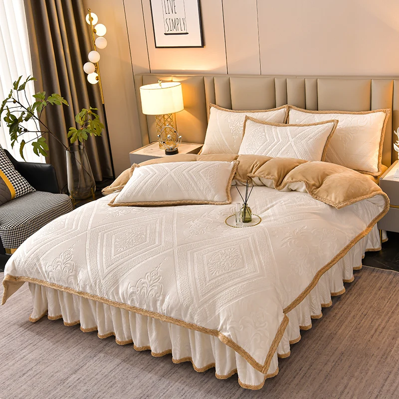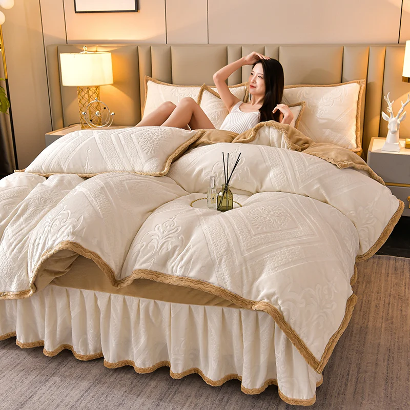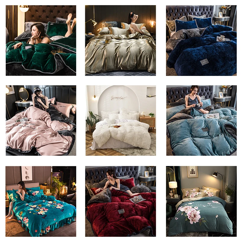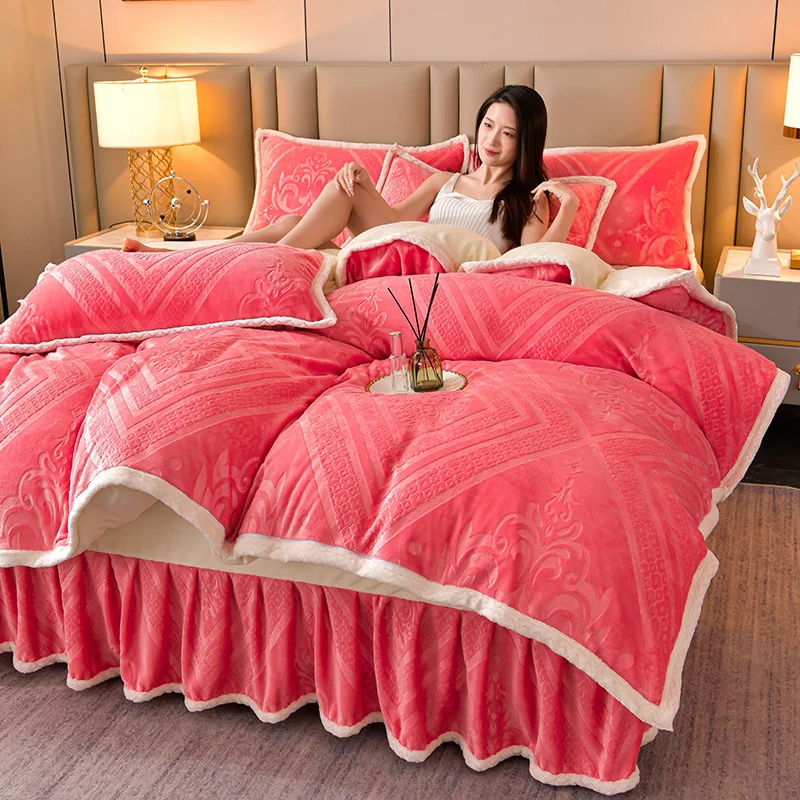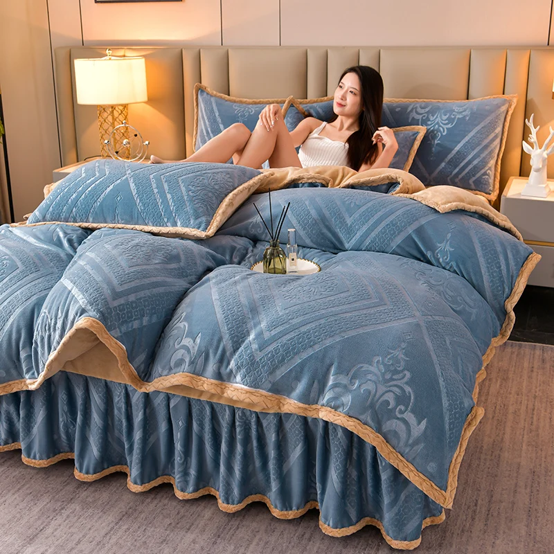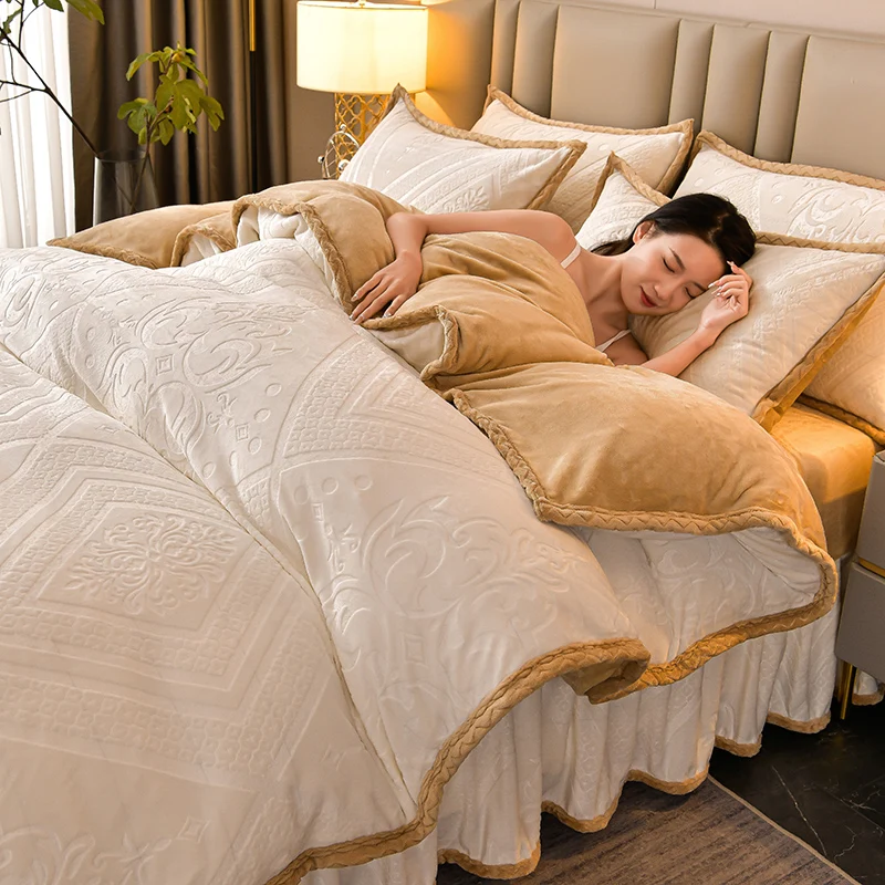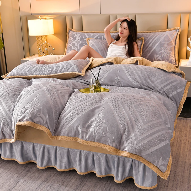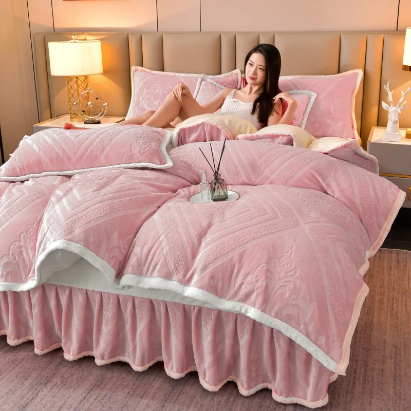 High-end Class A milk velvet four-piece set autumn and winter warm baby velvet thickened coral velvet sheets duvet cover bedding