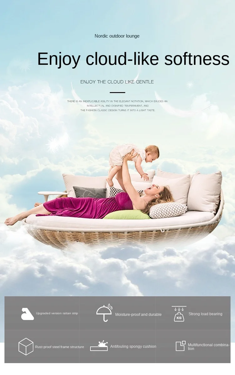 Outdoor Bed and Hammock Double Swing Rocking Chair Indoor Adult Cradle Courtyard Rattan Sofa