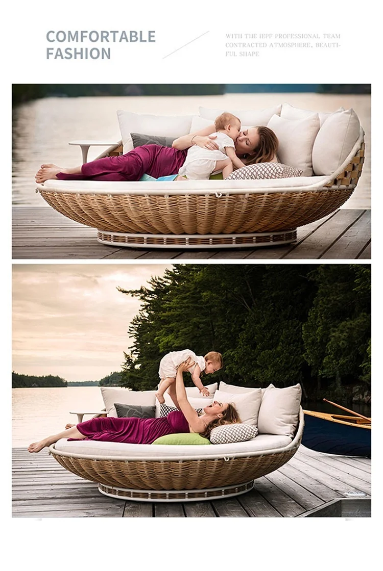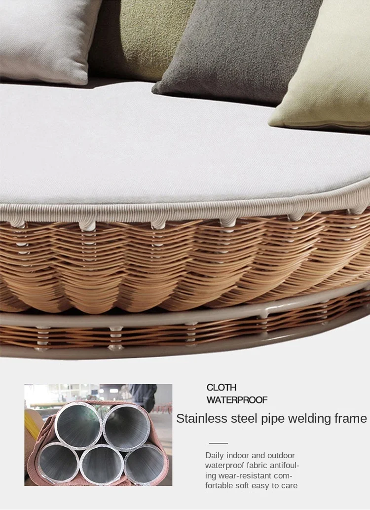 10x Beds Pack, Rattan Lounge Bed 2m Round / Soft Pillows and Cushion Included