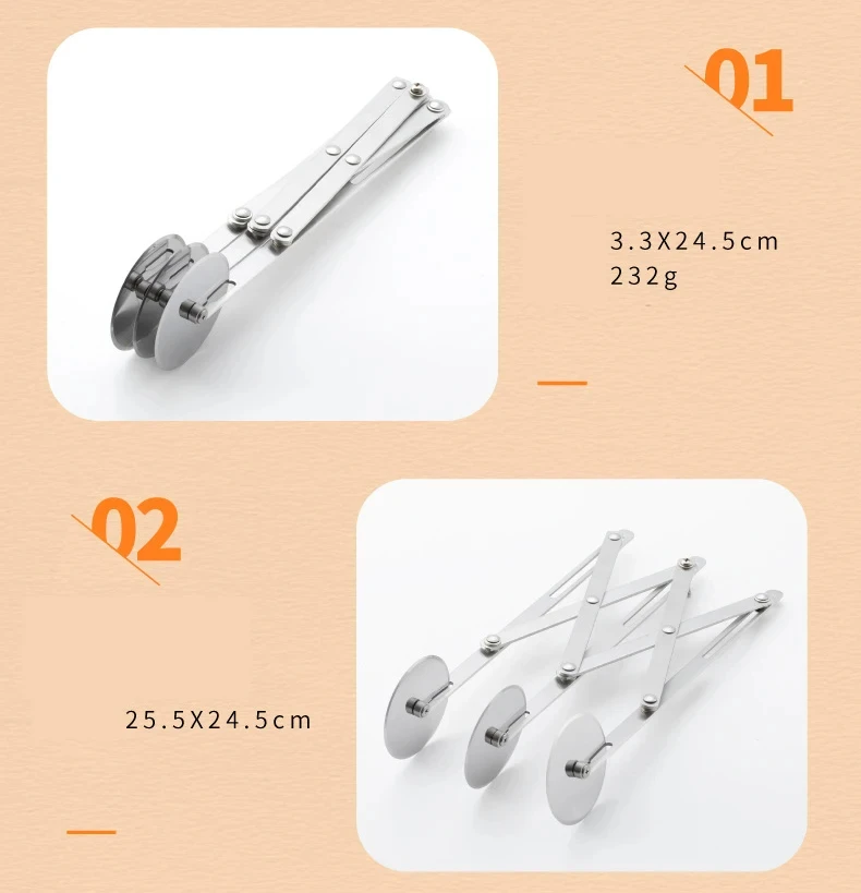 【Expandable Dough Cutter Construction】:This cutter is made of stainless steel for long-lasting durability and resistance