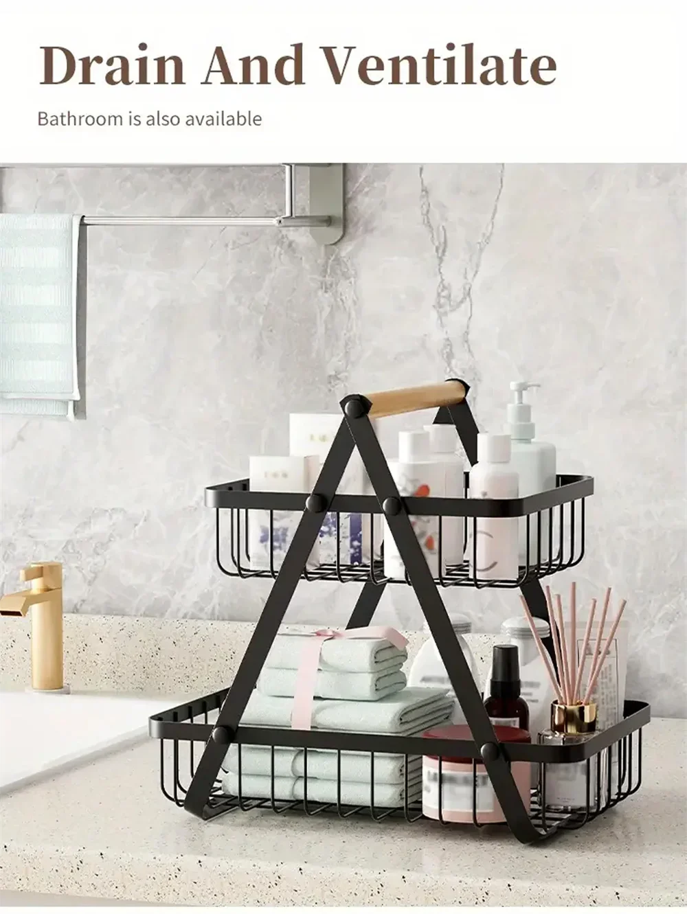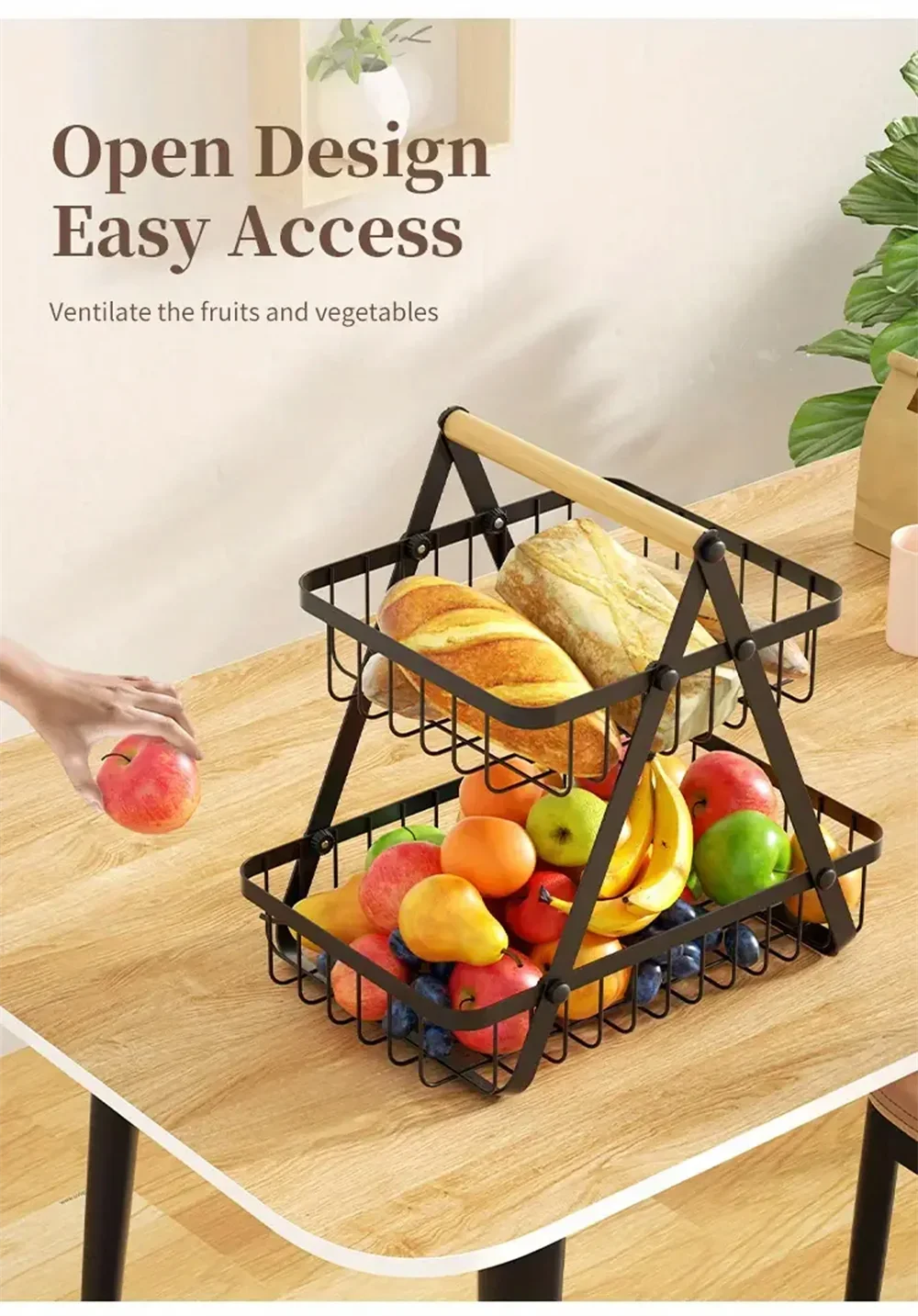 2/3 Tiers Countertop Fruit Basket,Portable Fruit Bowle Basket Kitchen Organizer Storage & Dining Room Fruits Vegetable Snacks