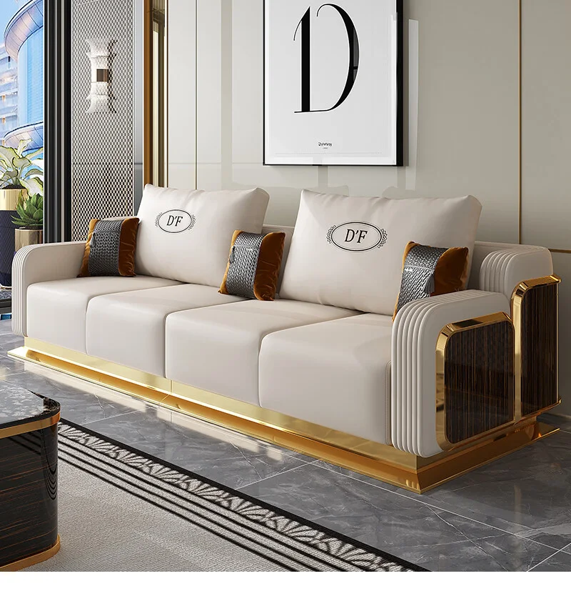 Modern Luxury Leather Sofa Wooden Living Room Sofa Set