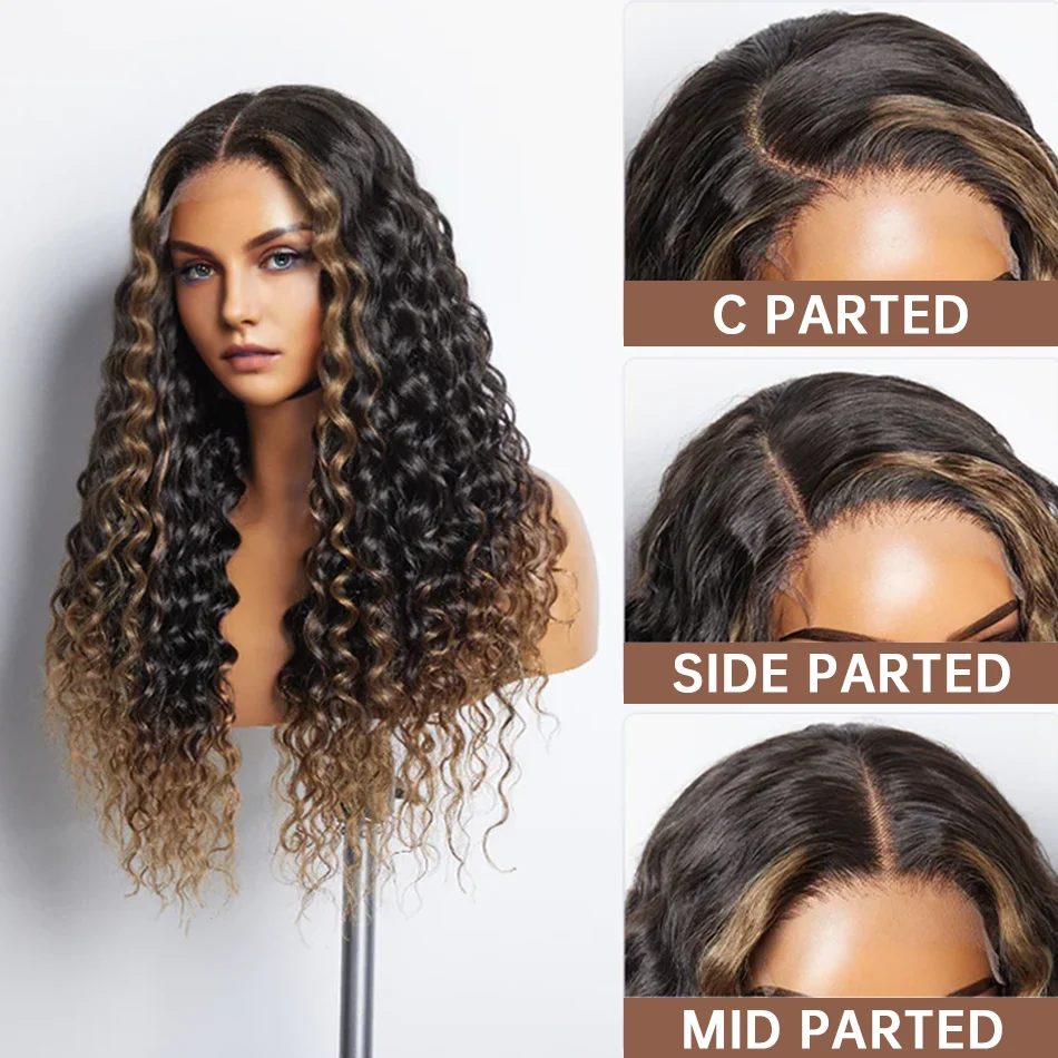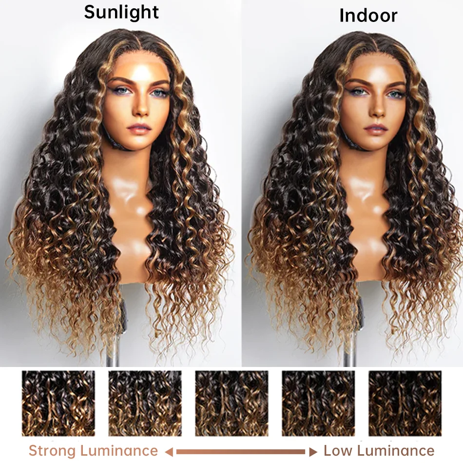 Highlights Lace Front Wig Human Hair Deep Wave Human Hair Wigs Pre Plucked Brazilian 13×4 Deep Curly Lace Front Wigs for Women