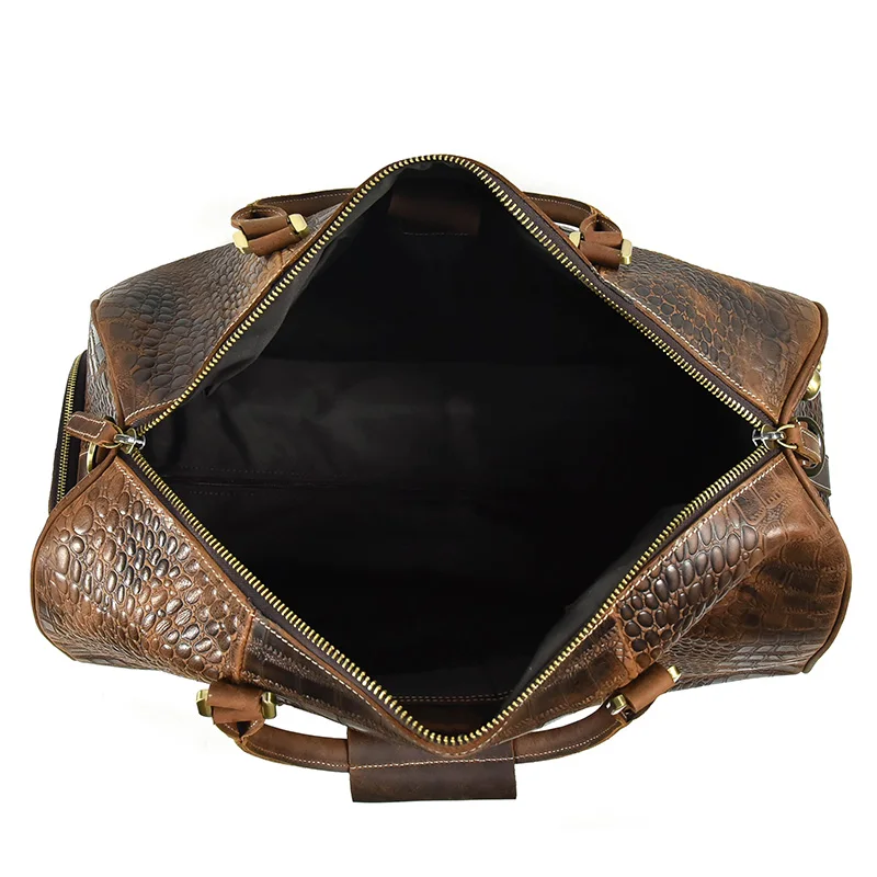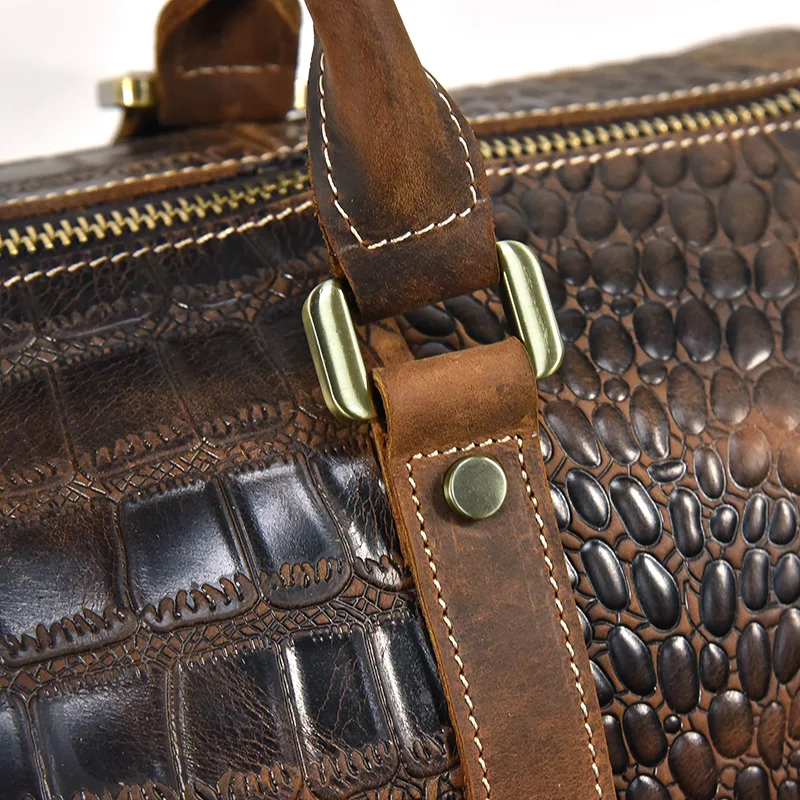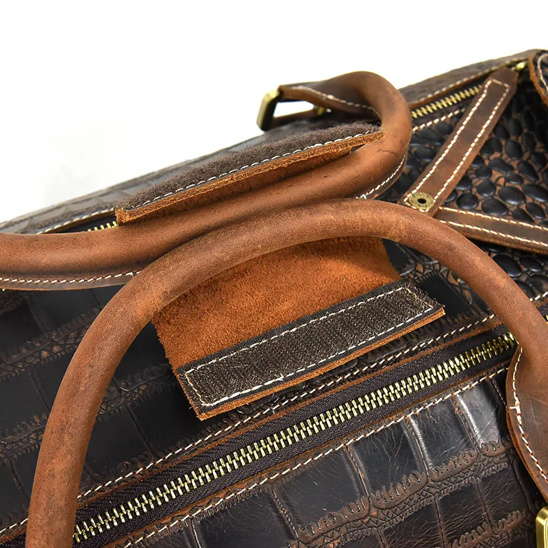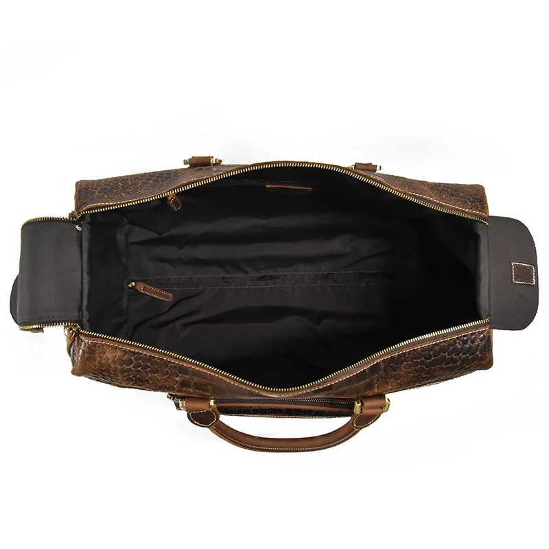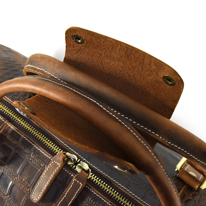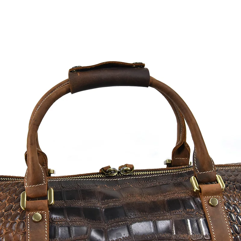 Retro Travel Bag Men Genuine Leather Duffe Bag 20 Inch Large Capacity Handbag Fitness Bag with Shoe Position Luggage Handbags