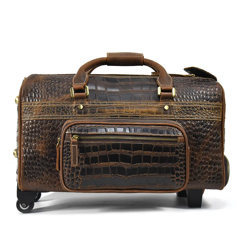 Men Travel Suitcases With Wheels Genuine Leather Luggage Suitcase Fashion Crocodile Pattern Trolley Case For Women Travel Bag
