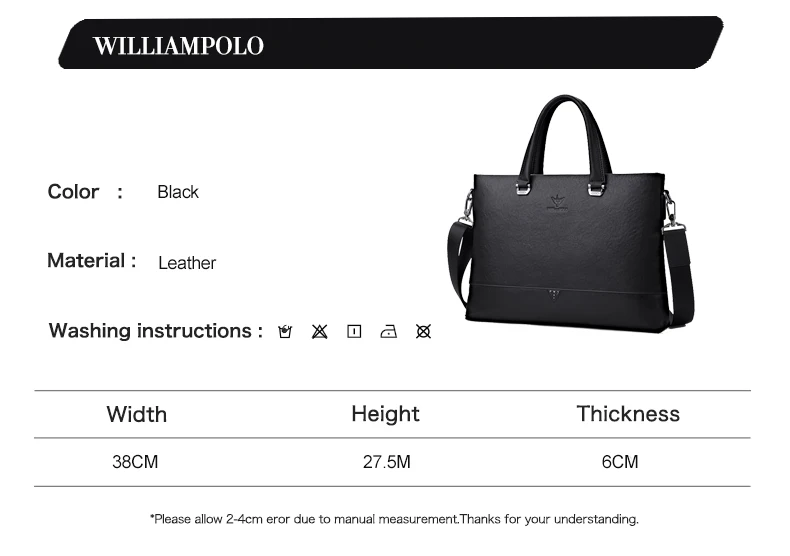 Fashion Black Briefcase Men’s Messenger bag Soft PU Leather Shoulder bag Tote Brand Business Male Crossbody bags Handbag