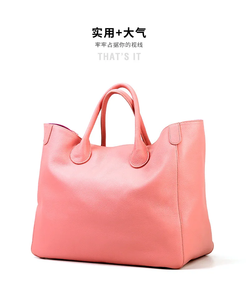 Roomy Women Bag Genuine Leather Handbag Luxury Cowhide Casual Tote Thick Real Natural Leather Bucket Shopper Daily Bag Big Purse