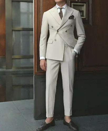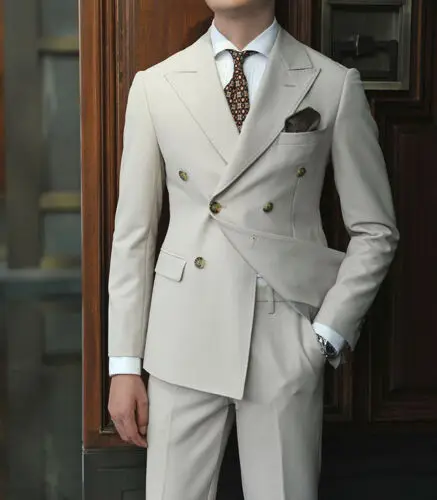 2024 Mens Suits Double Breasted Beige Suit For Man Peak Lapel Blazer Jacket Pants 2 Piece Formal costume homme Suits Handsome