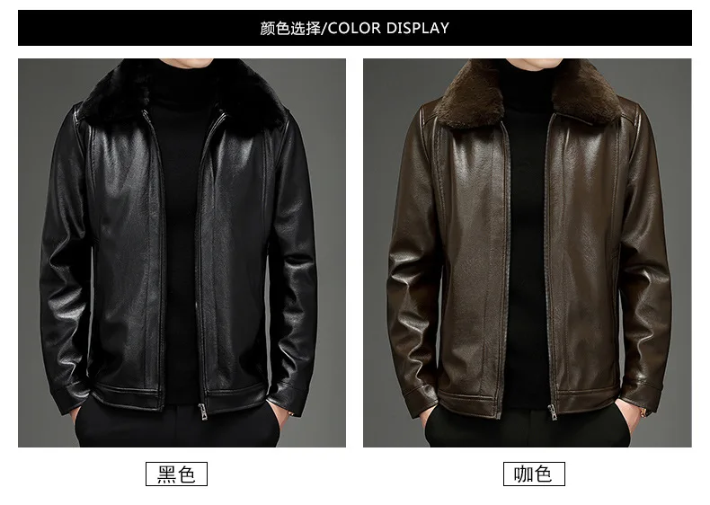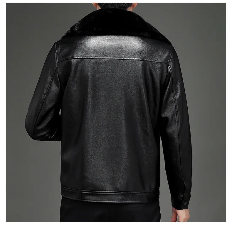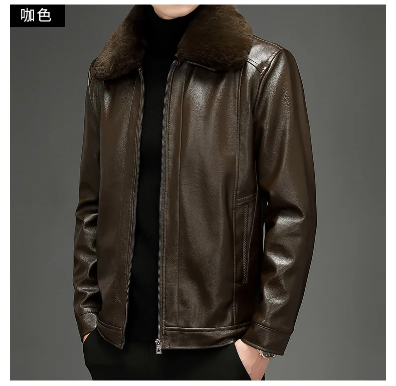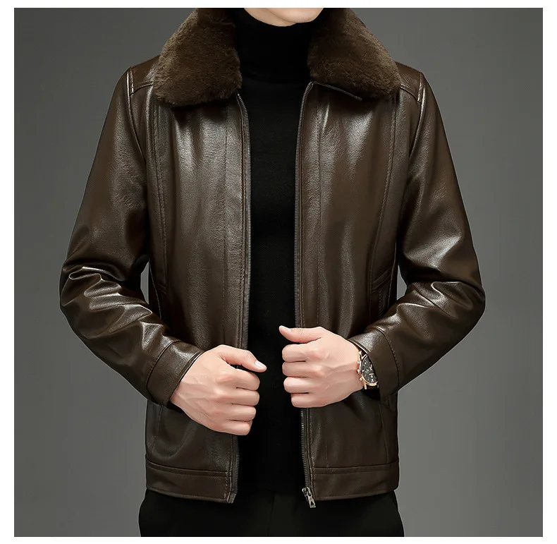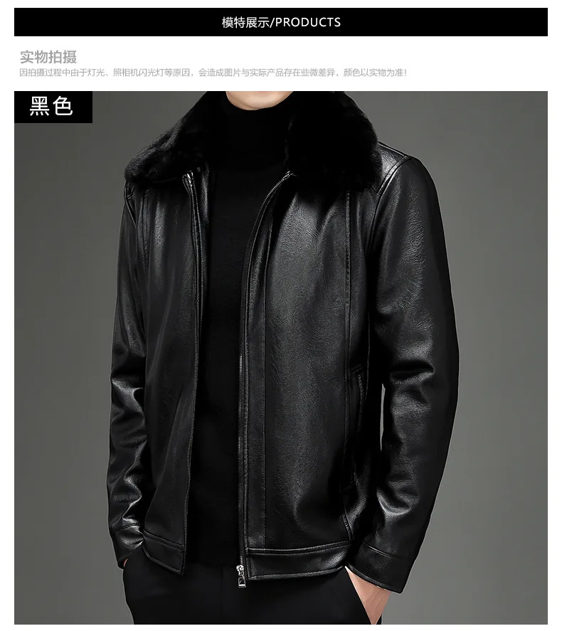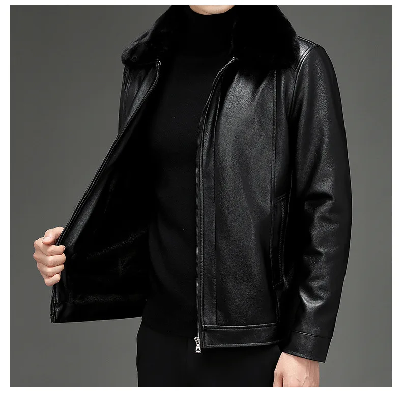 Mens Thick Fleece Pu Leather Jackets Male Casual Fashion Slim Windbreak Coats Men Faux Fur Plush Leather Coat Winter Velvet Warm