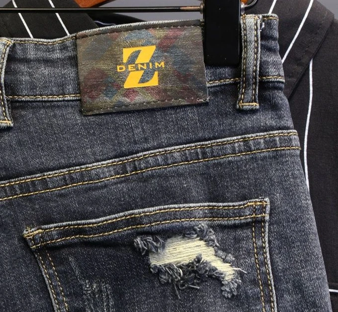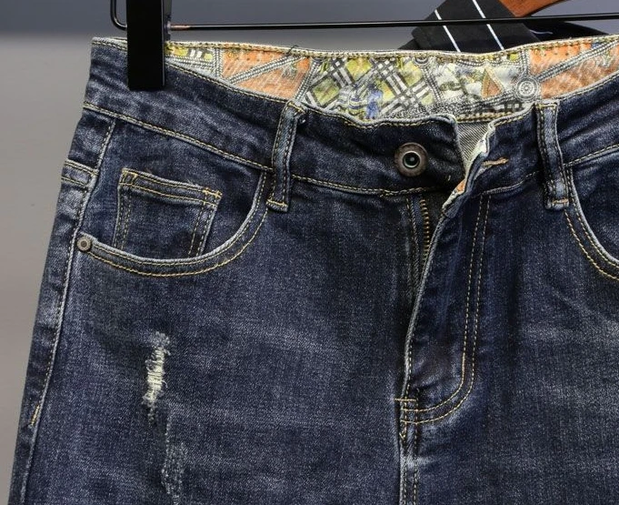 Men’s Fashion Ripped Jeans High Quality Luxury Brand Men Slim Fit Fashion Small Foot Blue Pants Male Stretch Skinny Jeans 54