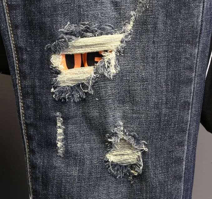 Men’s Ruined Denim Jeans Hole Trousers Ripped Large Size Straight Hip Hop High Street Brand Fashion Male Pants