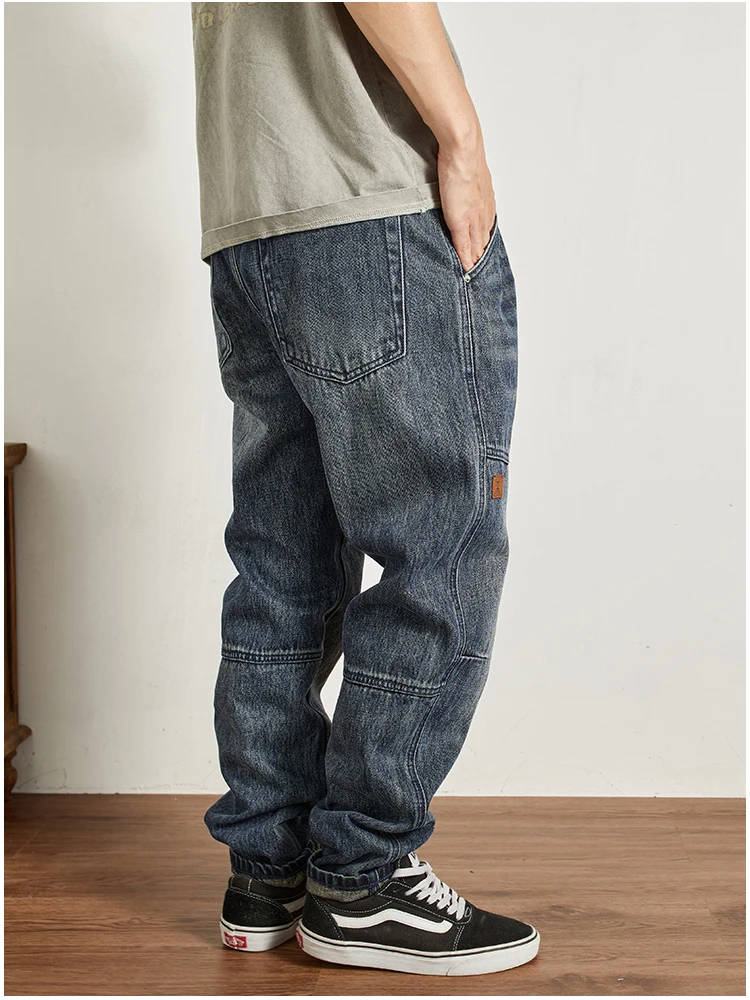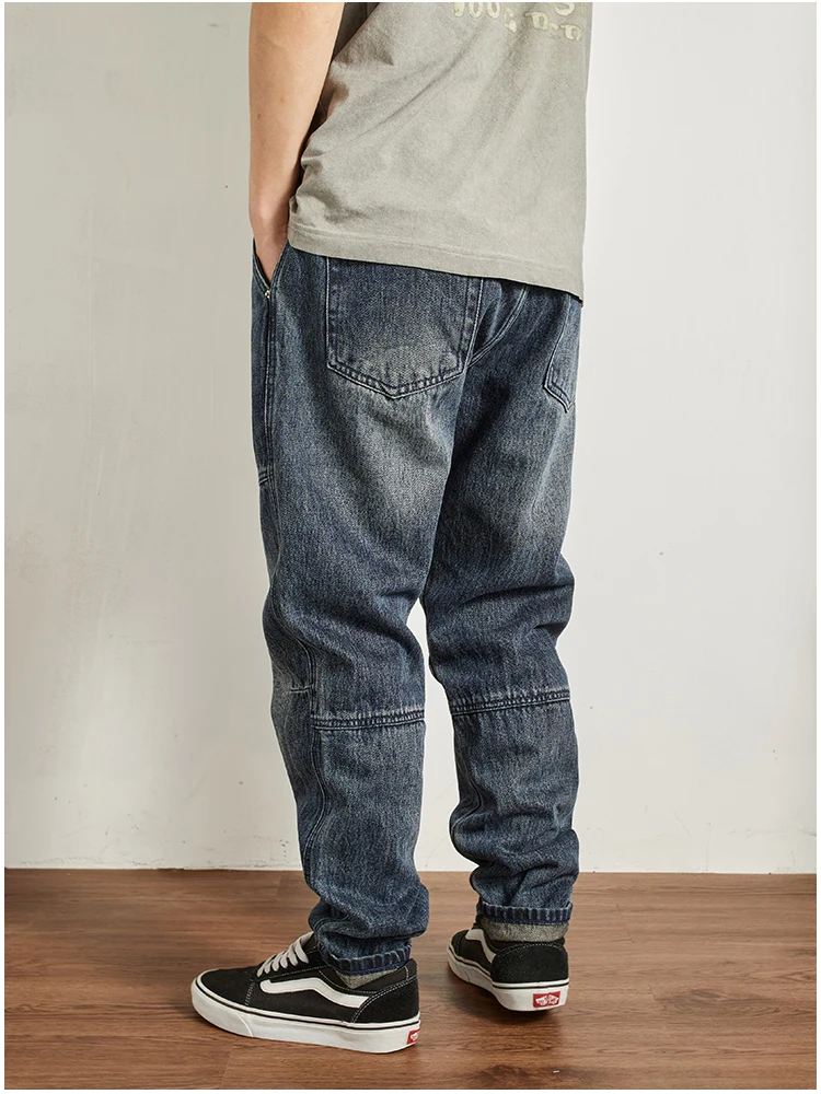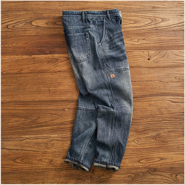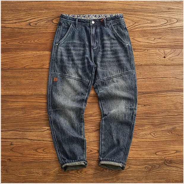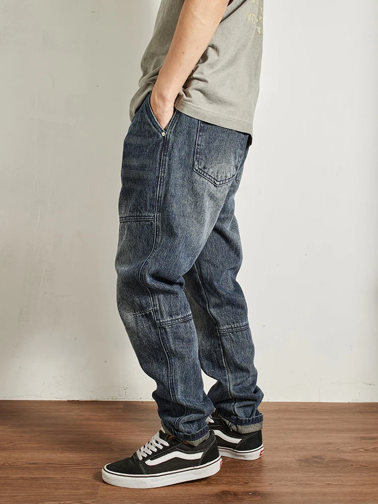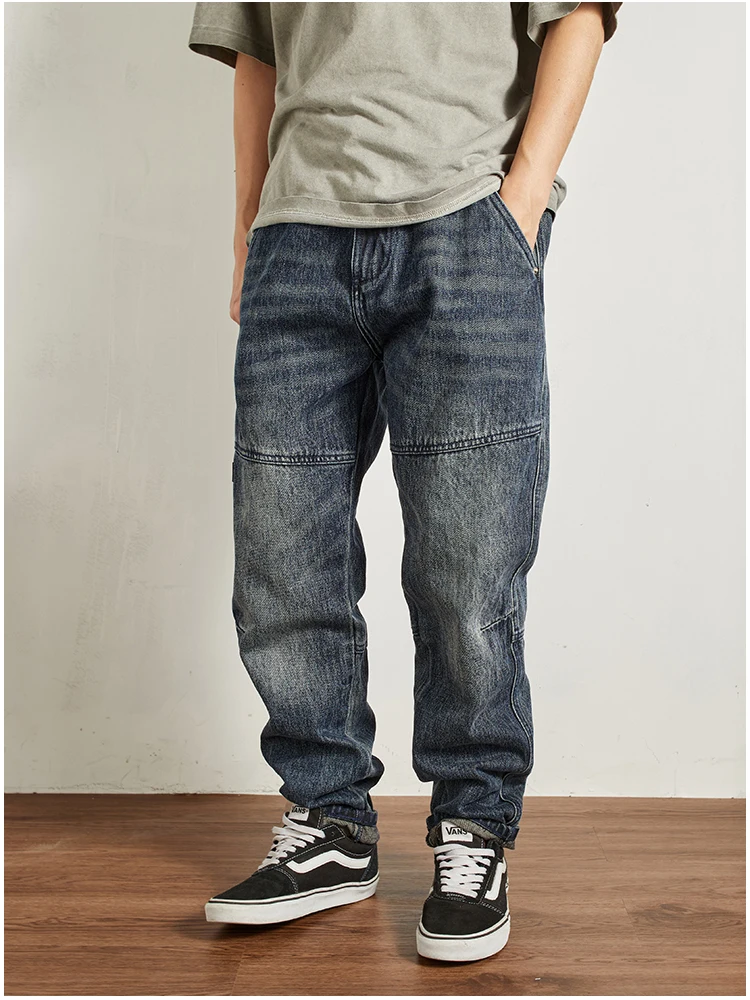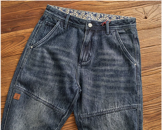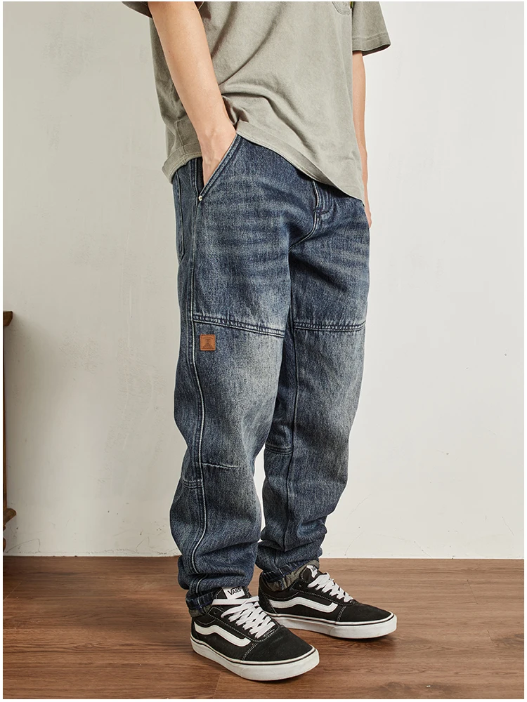 Cat must brush white vintage personality patchwork jeans men heavy chunky do old wash loose trend denim pants