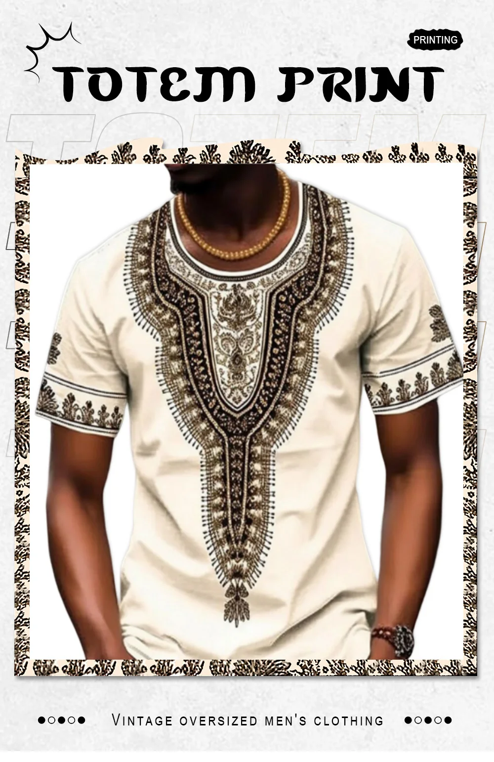 Men’S T-Shirt Summer Short Sleeve Tops Totem Printed Tee Loose Comfortable Pullover Casual Tshirt Vintage Oversized Men Clothing
