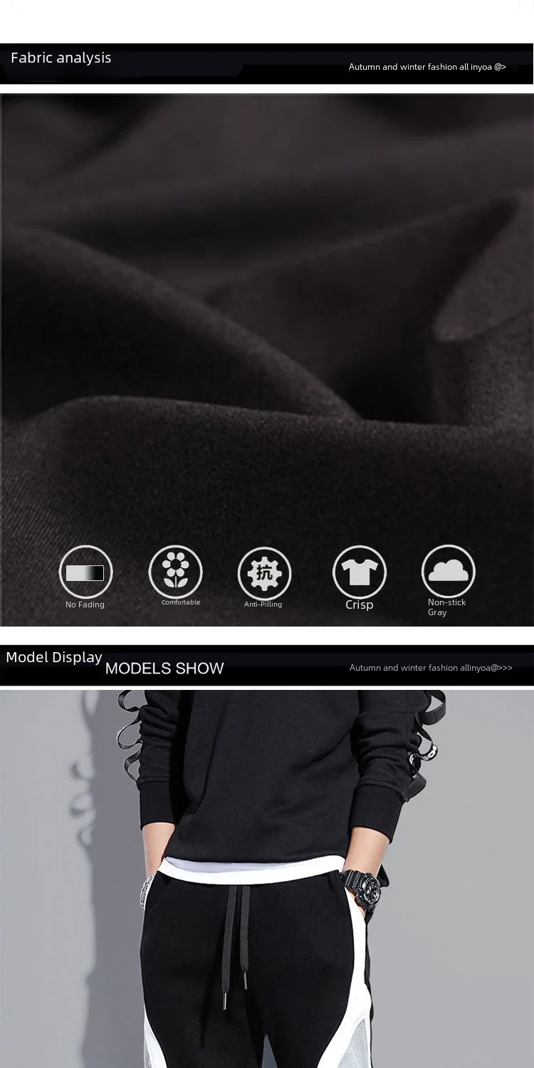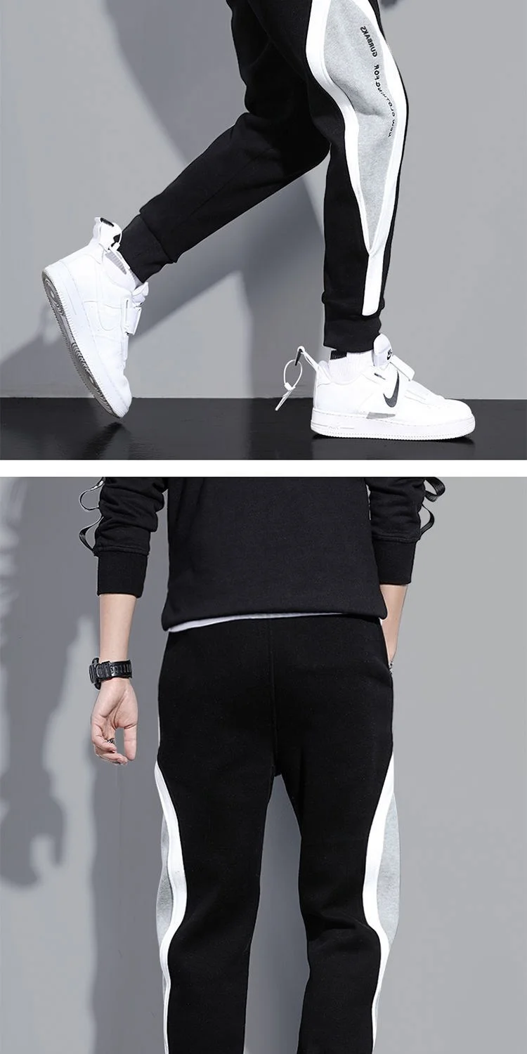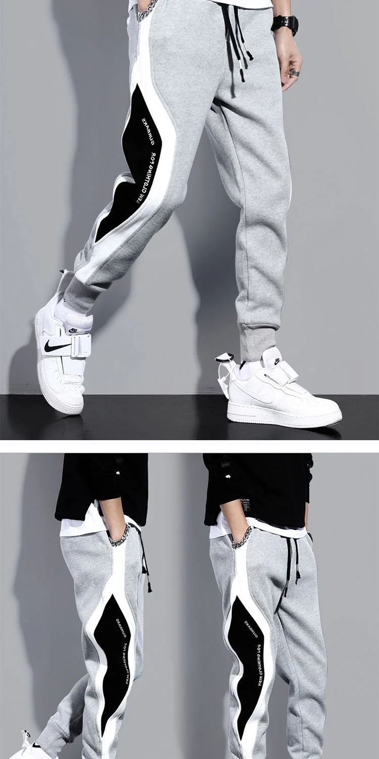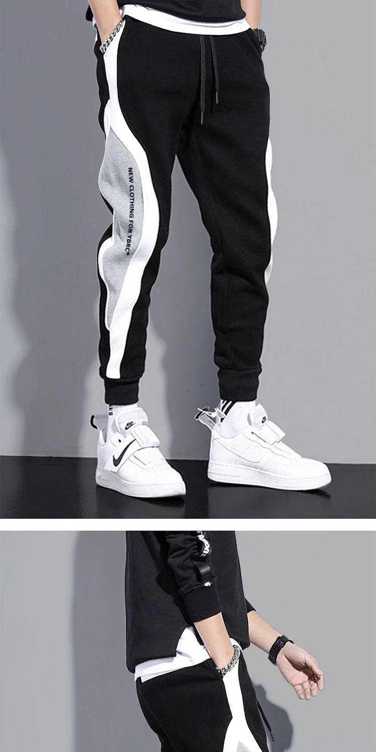 Loose Men Casual Pants Spring Autumn Season Trendy Student Sports Long Pants Nine-point Color Block Design