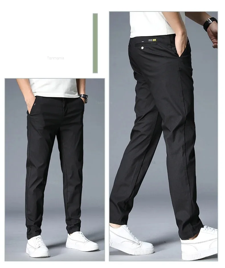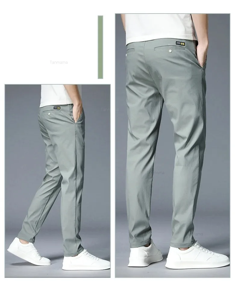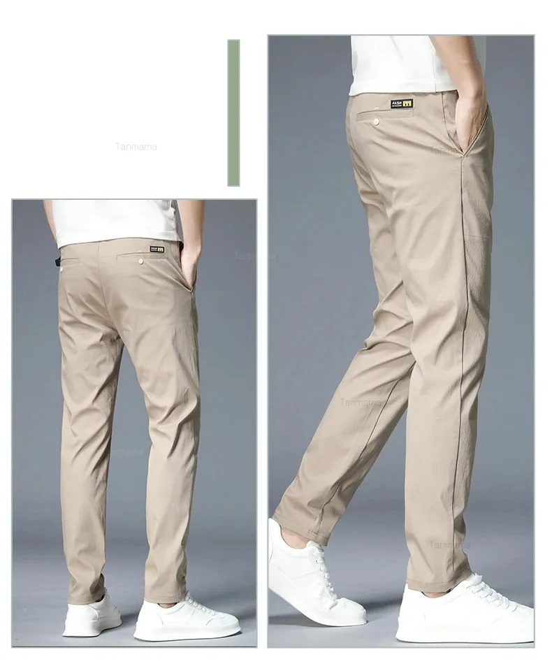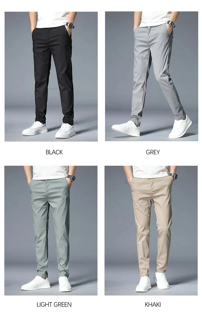 Summer Ultra-thin Men’s Casual trousers Slim Straight Elastic Ice Silk Sports Jogging Pants Fashion Korean Black Khaki Green