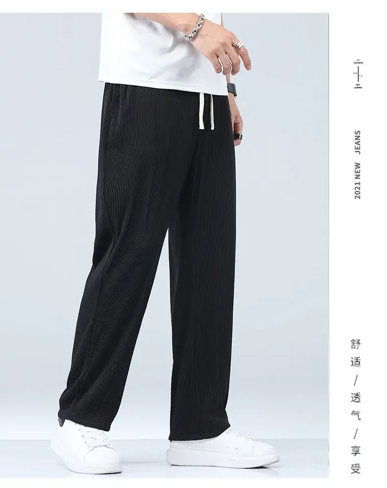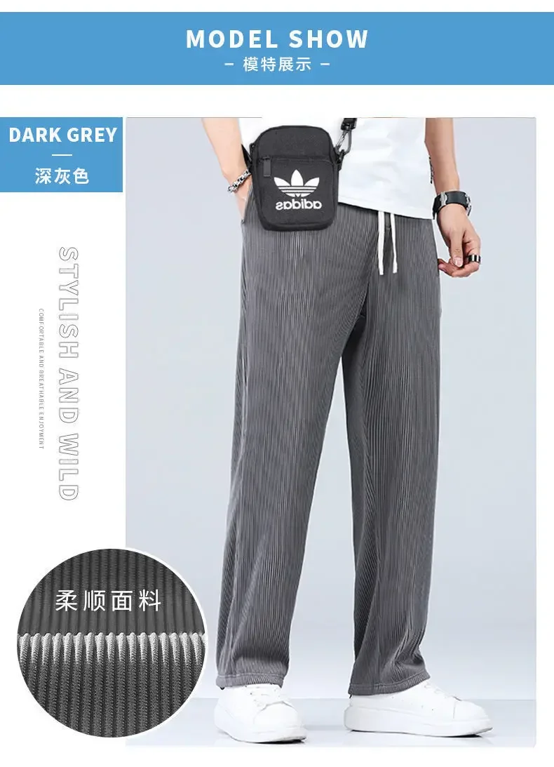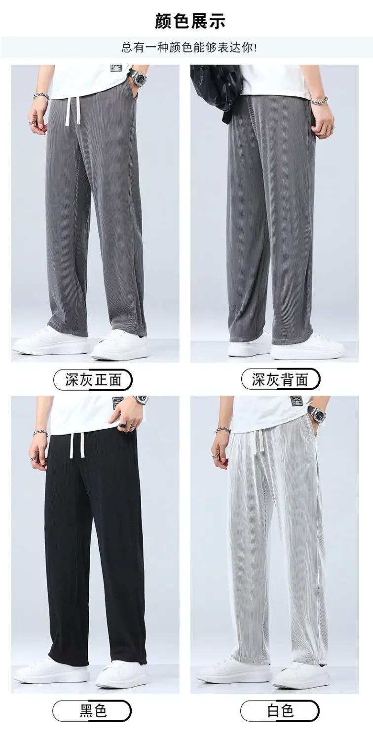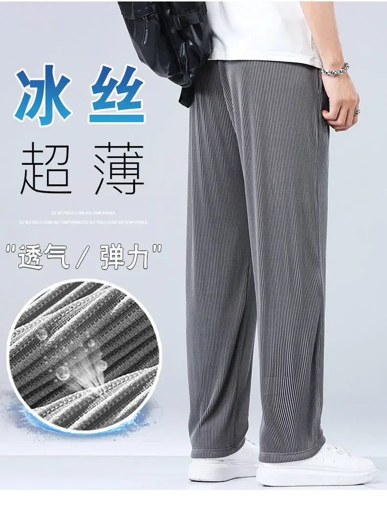 Summer Straight Pants Men’s Loose Thin Section Drape Ice Silk Pants Wide Leg Sports Casual Pants Fits 100kg