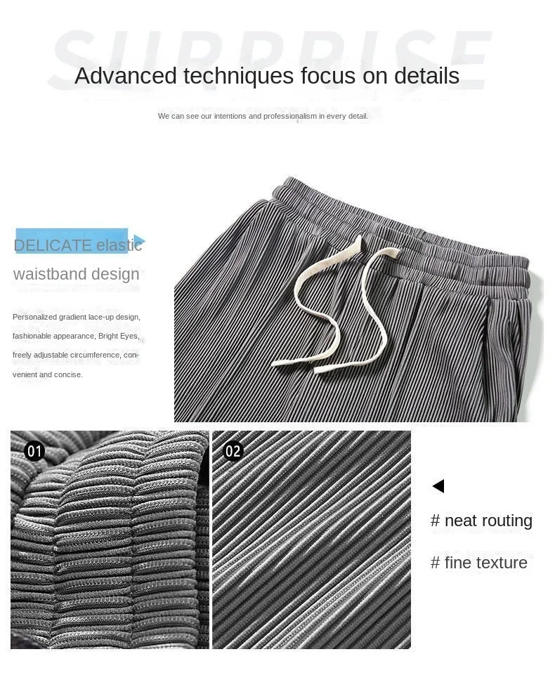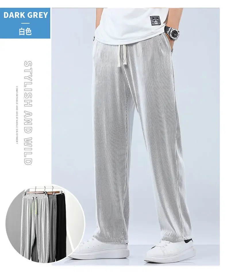 Summer Striped Pattern Breathable Pendant Casual Pants Men Thin Loose Straight Wide Leg Elastic Waist Jogger Trousers Streetwear