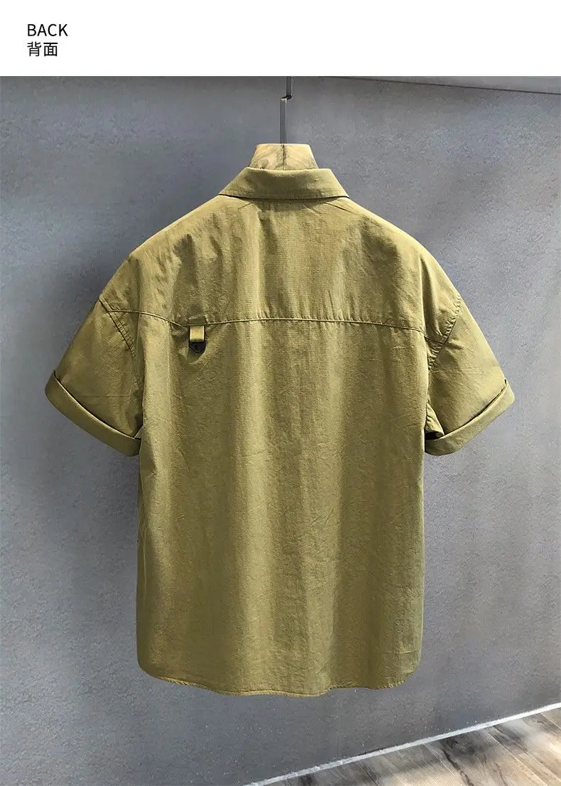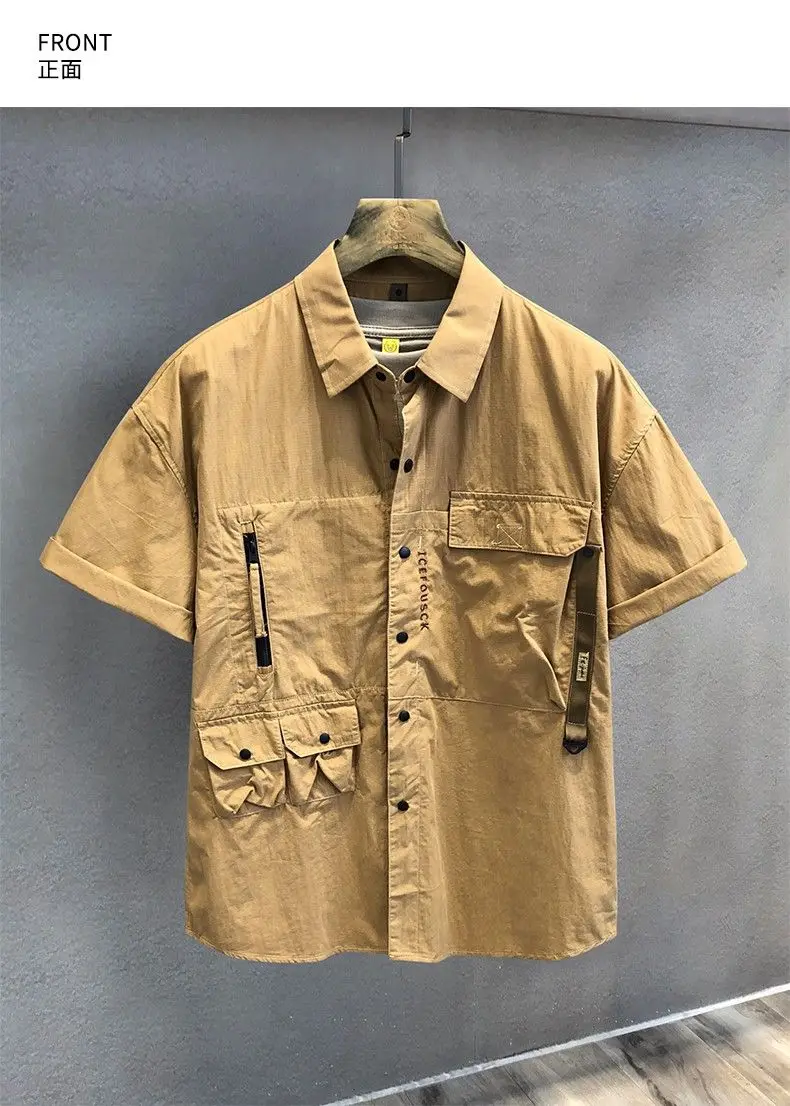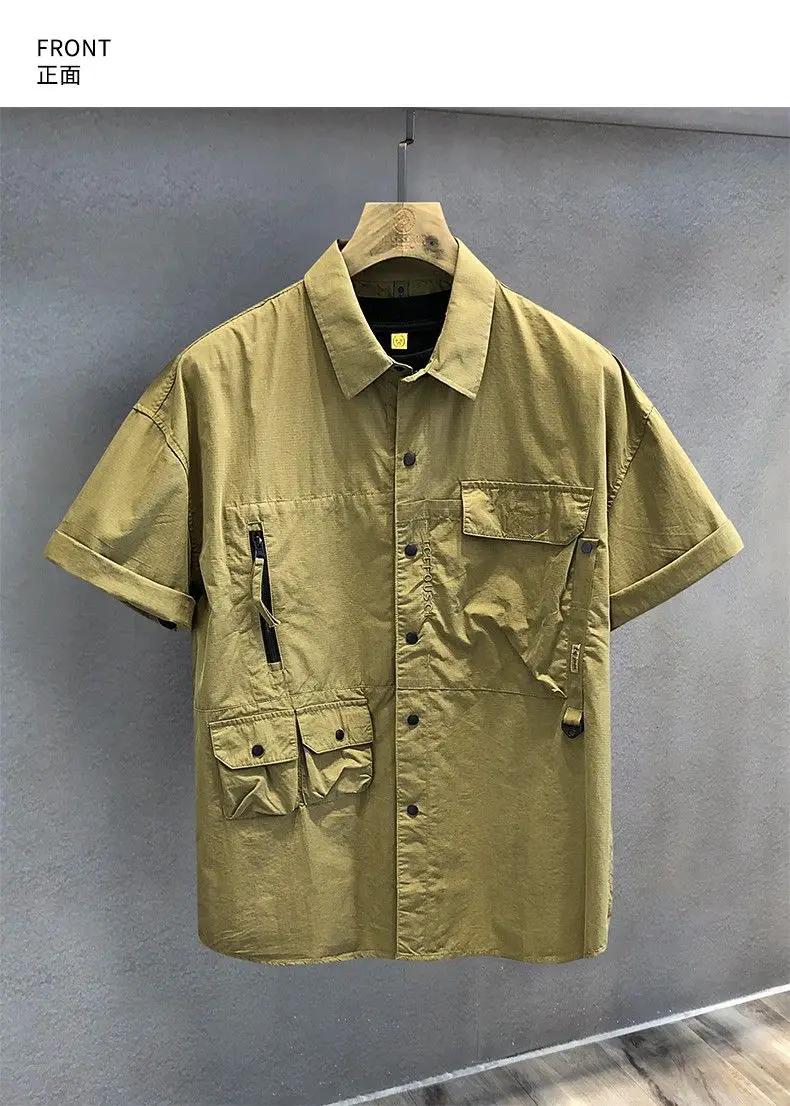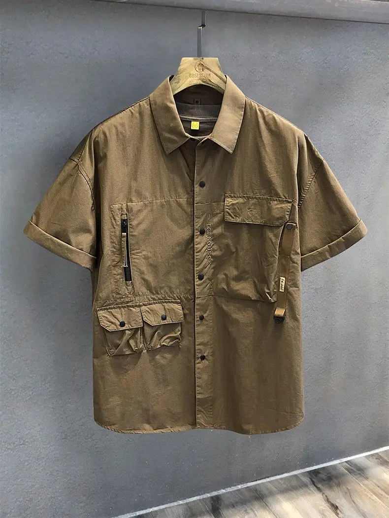 New Men’s Shirt Casual Retro Loose Short Sleeve Outdoor Lapel Multi-Pocket Work Jacket Fashion Trend Streetwear Men’s Clothing