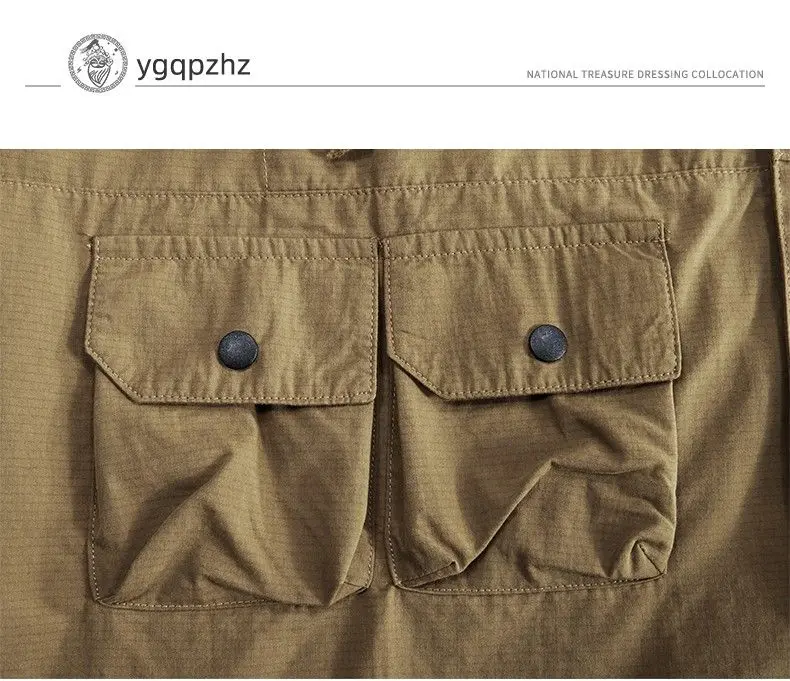Khaki retro trend wash to do old camouflage cargo shirt men three-dimensional pocket design shirt jacket