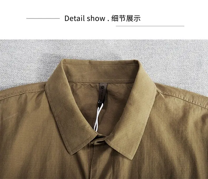 Dress Cargo Shirt Men 2024 Brand New Regular Fit Long Sleeve Button Down Shirt Solid Color Turn-neck Plus Size Work Cargo Shirt