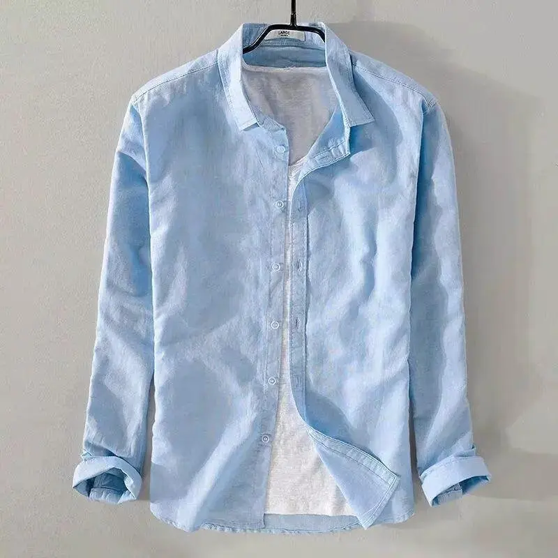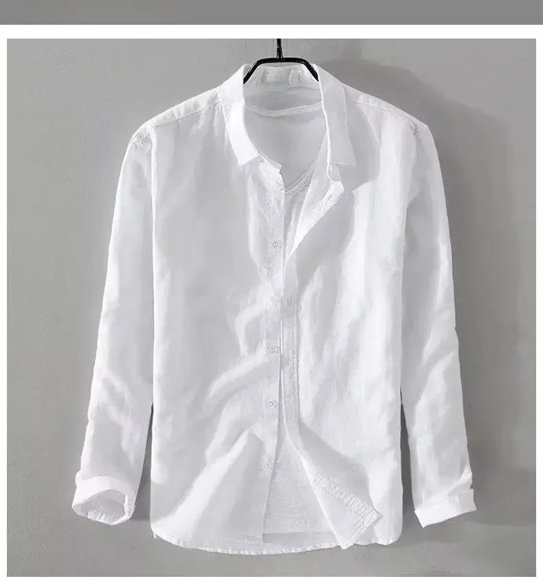 Men’s Solid Color Linen Shirt Long Sleeve Casual Lapel Slim Fit Youthful Japanese Style Breathable Cotton Linen Shirt
