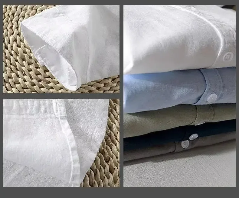 2024 Men Casual Cotton Linen ShirtsStanding Collar Male Solid Color Long Sleeves Loose Tops Spring Autumn Handsome Men’s Shirts