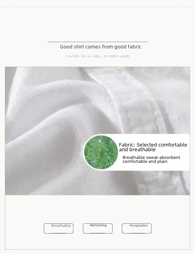 Short Sleeve Linen Shirt Men Simple Casual Retro Loose Style Youth Thin Basic Half Sleeve Cotton Linen Clothing