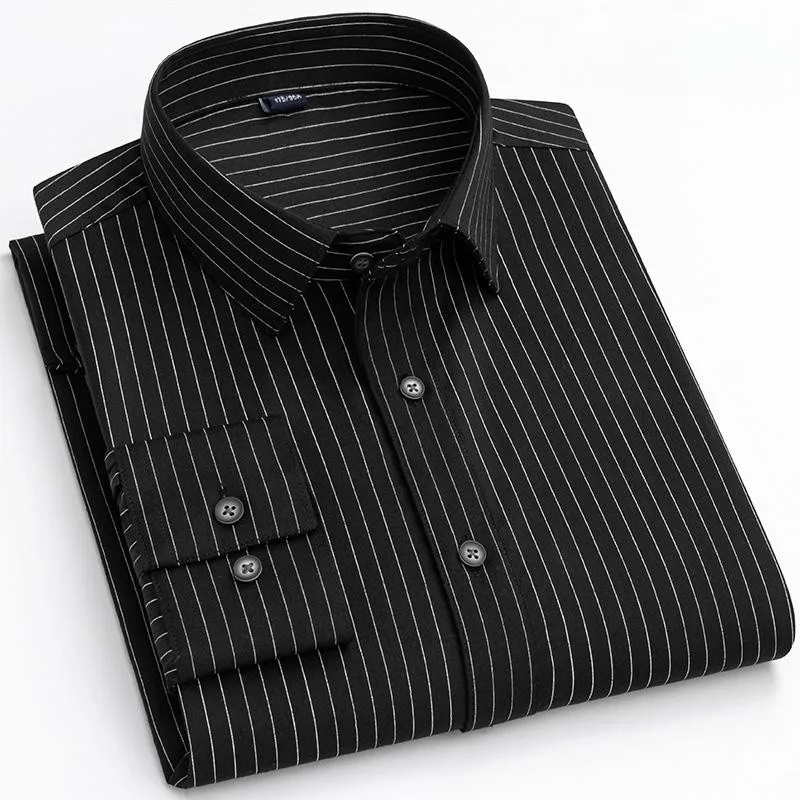 Bamboo Fiber Men’s Striped Stretch Shirt Long Sleeve Anti-wrinkle Non-ironing Formal Soft Fashion Casual Business Office Shirts