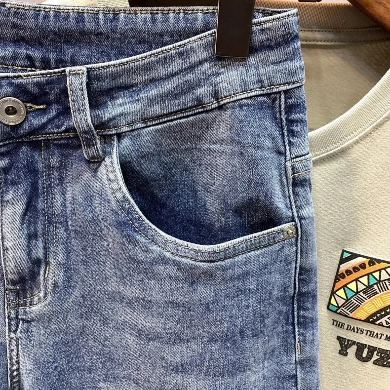 New Arrivals Denim Short Jeans For Men Thin Casual Fashion Summer Pants Elastic Straight Daily Fashion Trousers