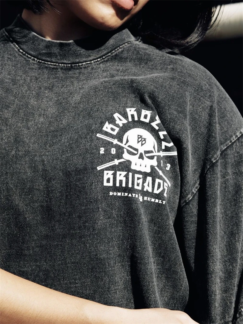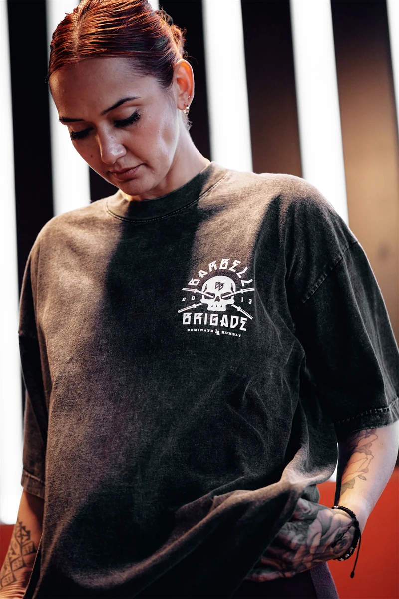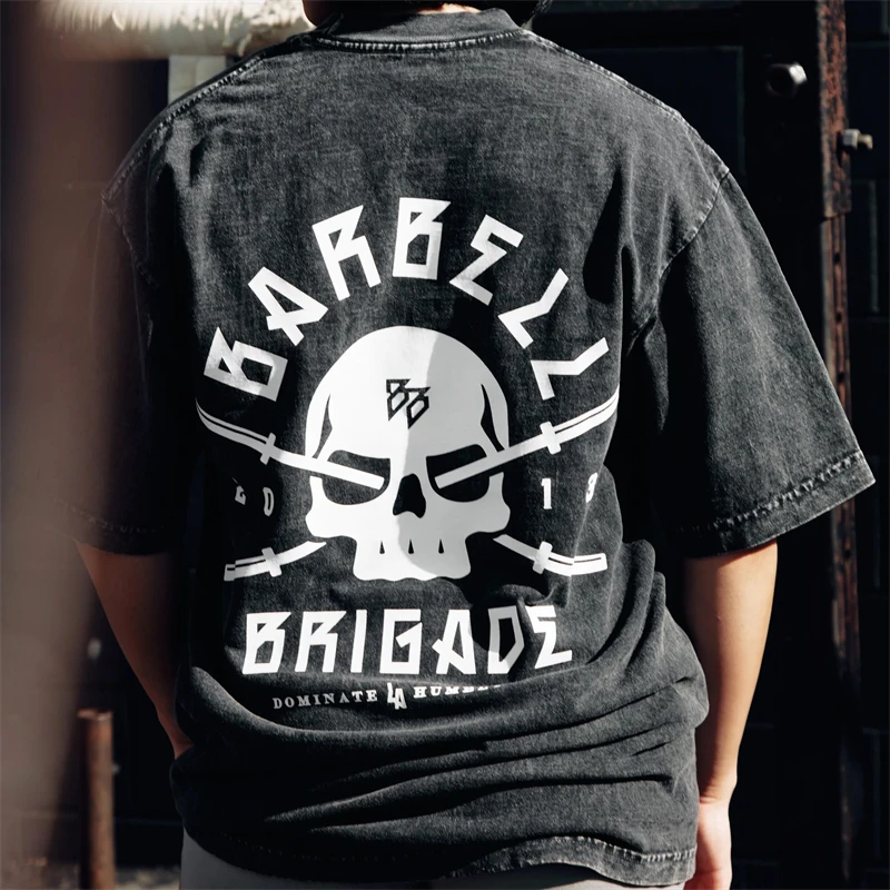 BARBELL BRIGADE REBIRTH TEE Washed Vintage 230G 100% Cotton T Shirt Men Women Oversized Fit Training Running Shirts Sportswear