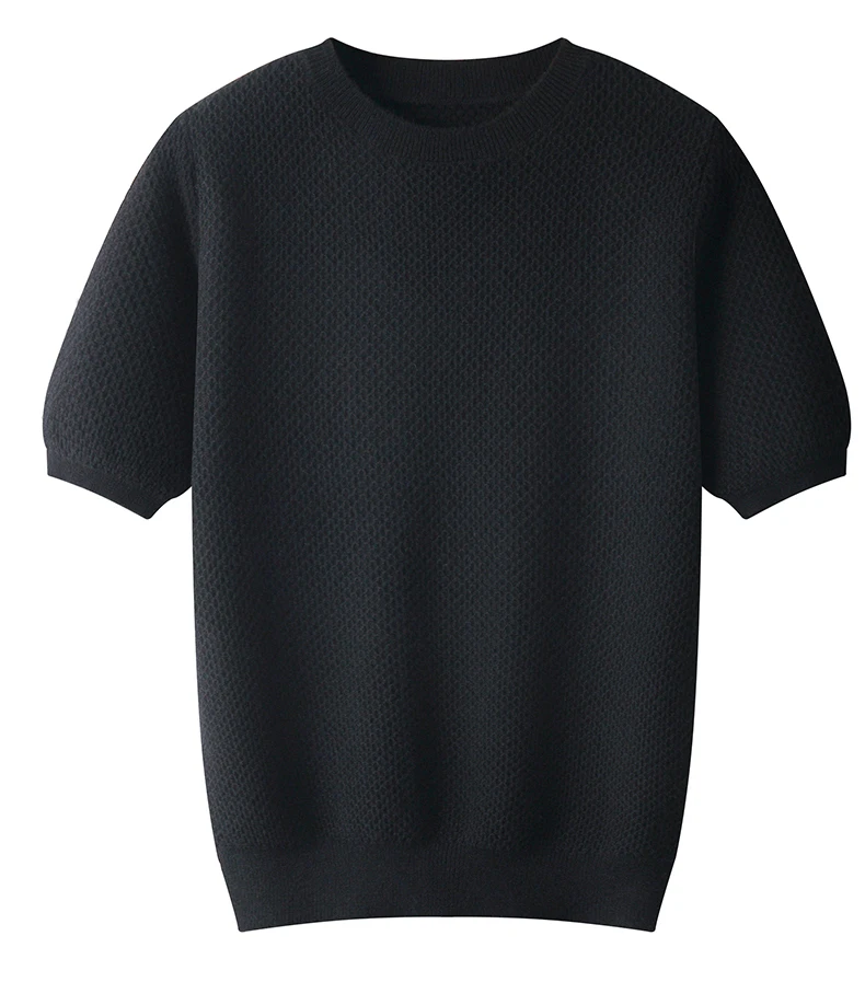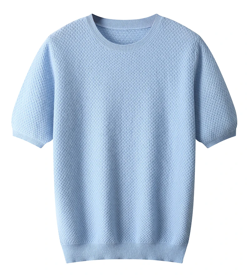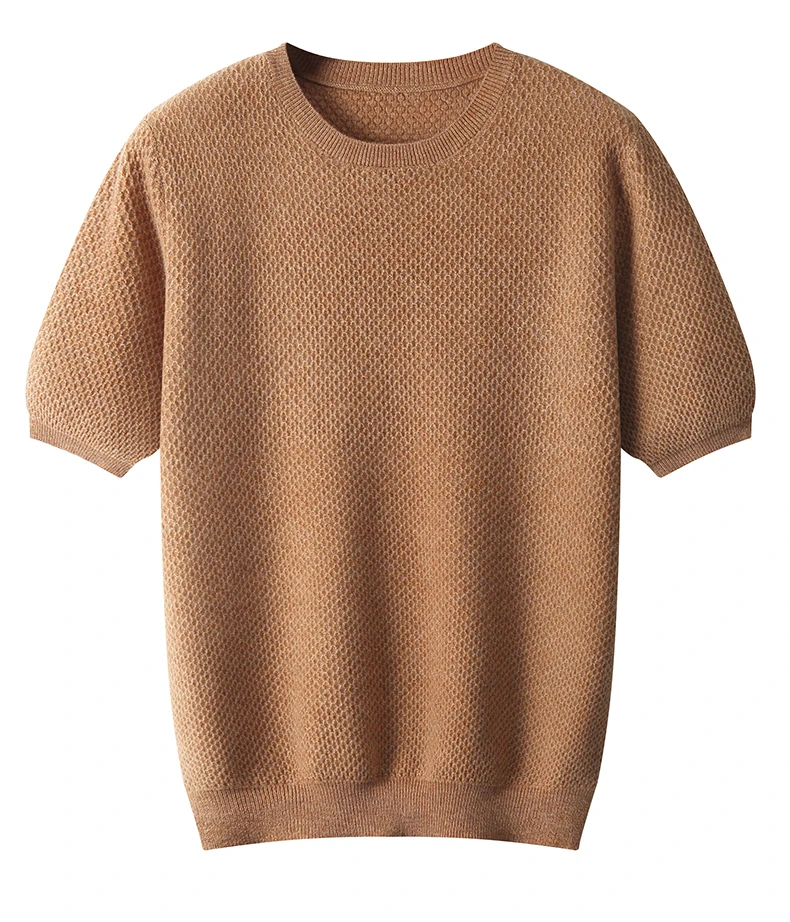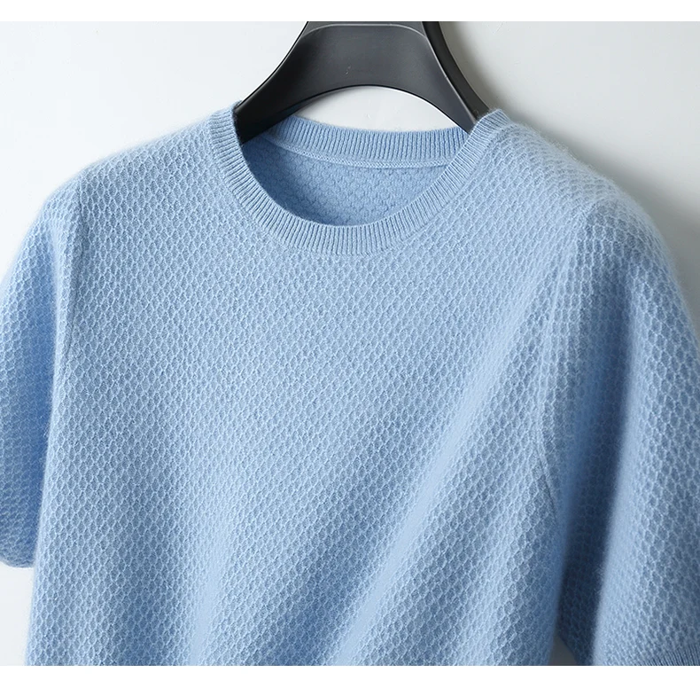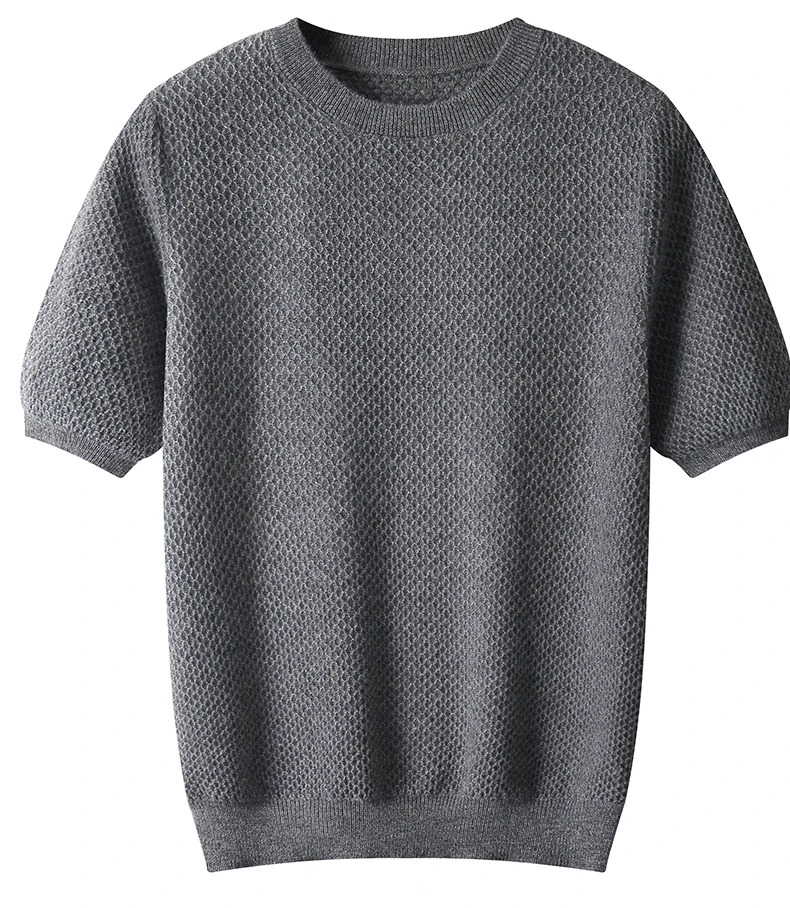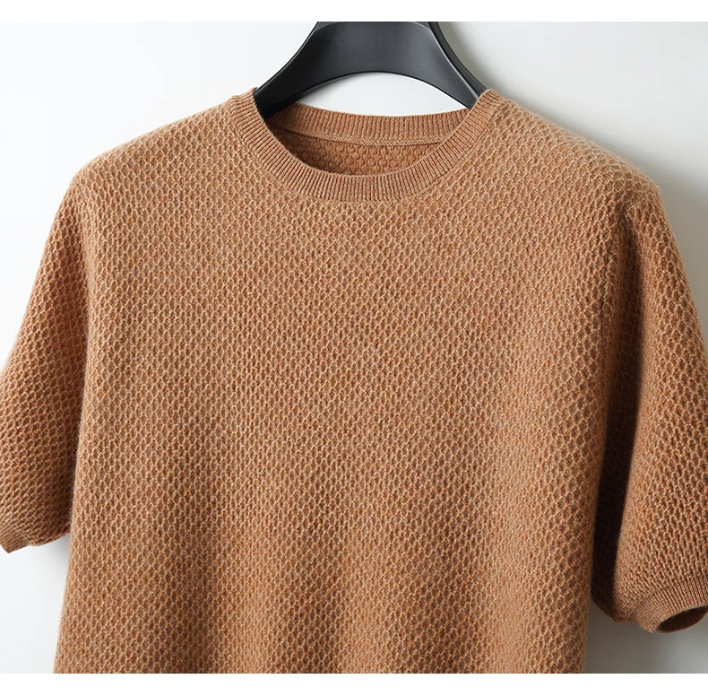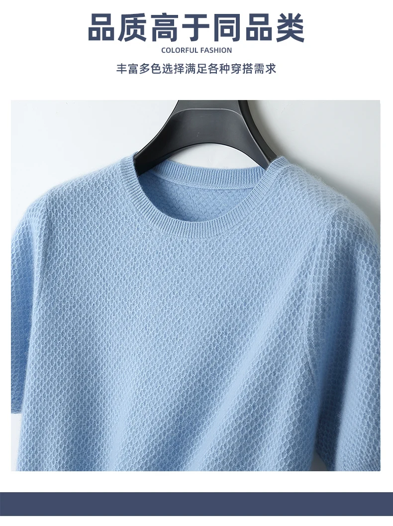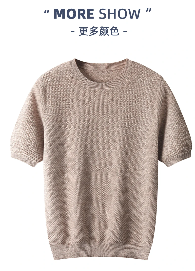Men’s T-neck pullover with short sleeves 100% pure wool sweater spring and summer new sweater solid color trend top