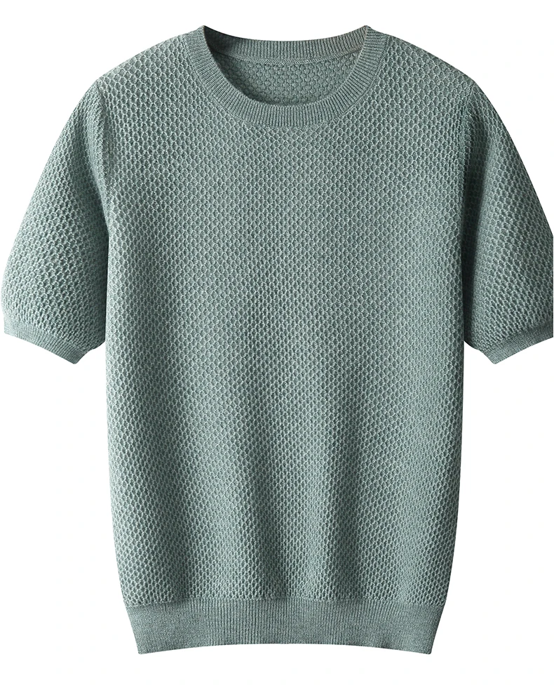 ZOCEPT 15% Cashmere 85% Mulberry Silk T-Shirts Summer Men Solid Knitted Short Sleeve Tees Tops Casual O-Neck Basic Men’s T Shirt