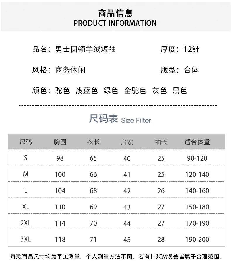 NOTE 2. It may has 2-3 cm errors due to manual measurement. please note when you measure your size. |
