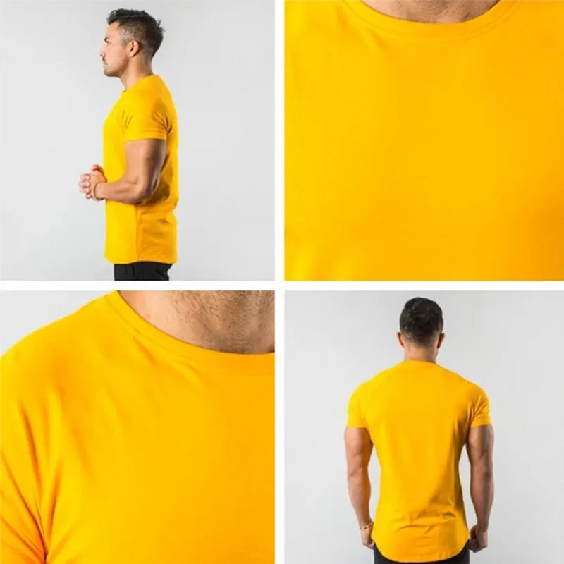 pure color Gym Cotton t shirt Men Fitness Workout Skinny Short sleeve T-shirt Male Bodybuilding shirt Summer Sports T-shirt men