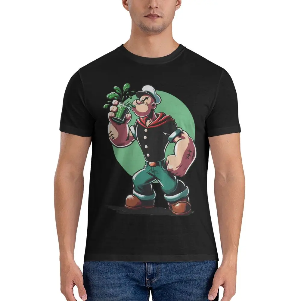 Men’s Popeyes Spinach Juice T Shirts Popeyes the Sailor Cotton Clothes Casual Short Sleeve Round Neck Tee Shirt Summer T-Shirts
