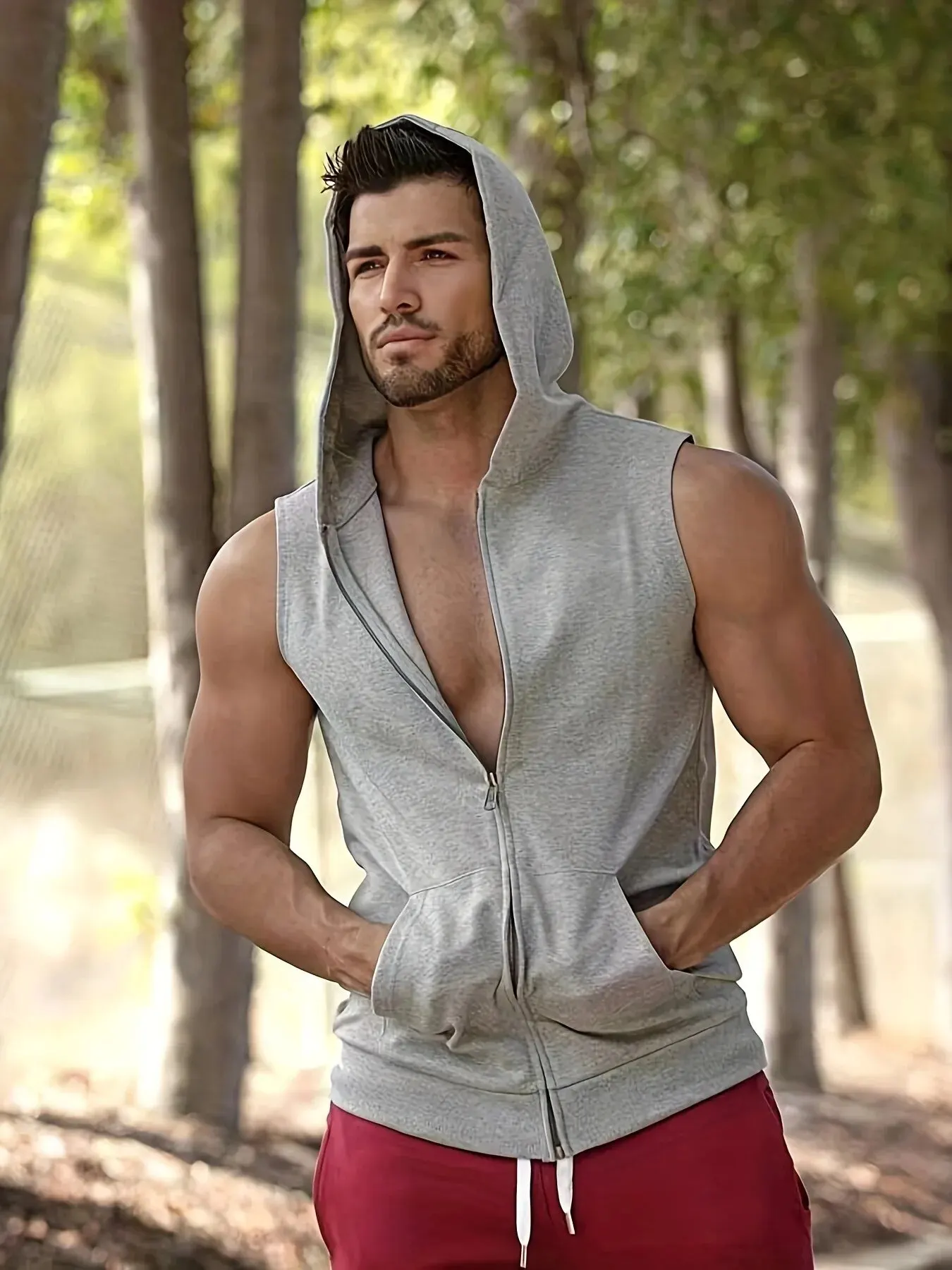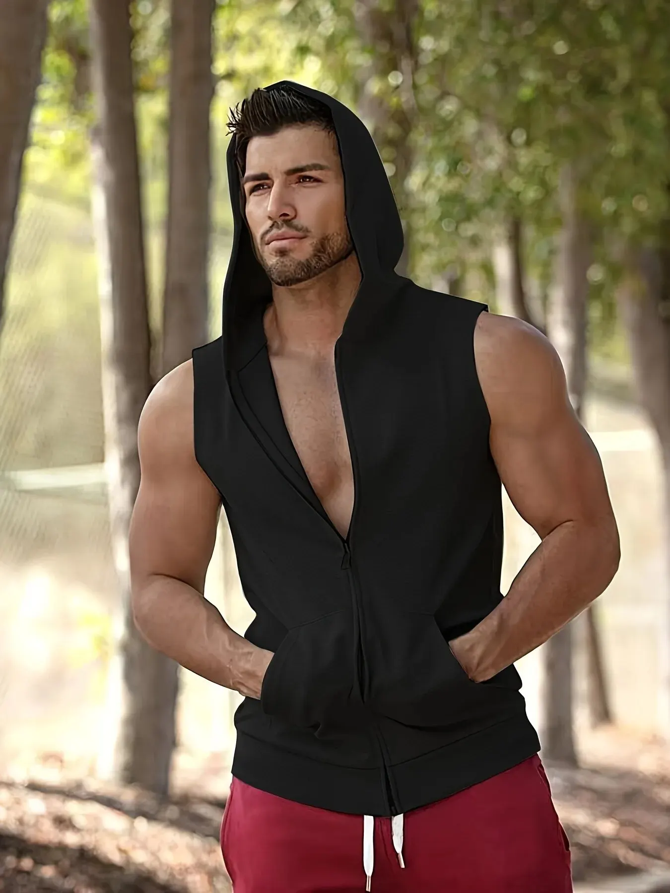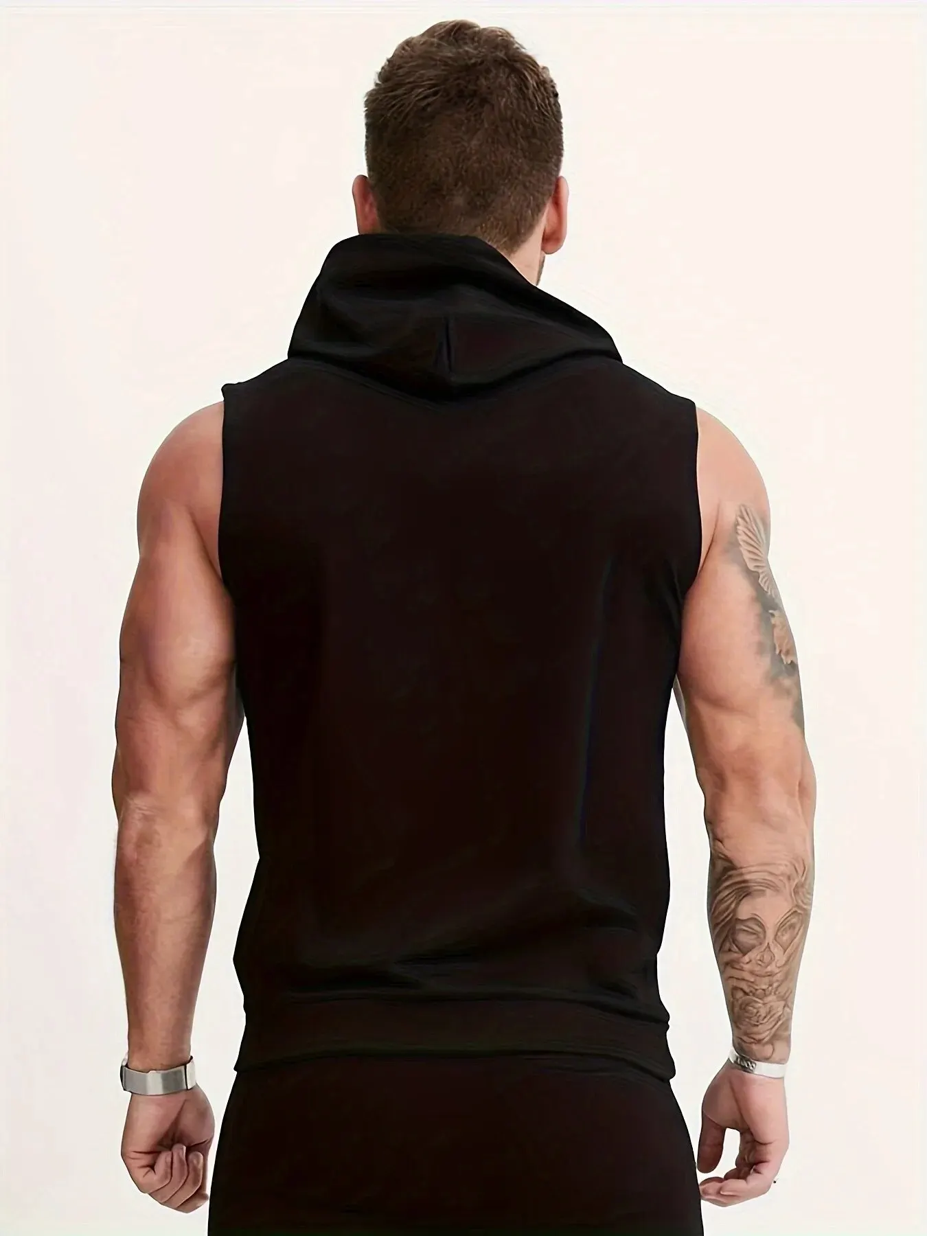 Men’s Solid Tank Top, Active Quick Dry Comfy Breathable Crew Neck Sleeveless Hooded Shirt, Men’s Clothing For Summer Outdoor