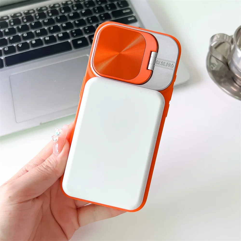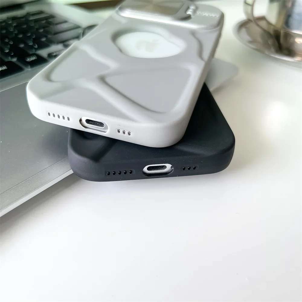 Features:  Hollow Magnetic Silicone Phone Case Lens Protection Flip Bracket for Magsafe Wireless Charging Cover