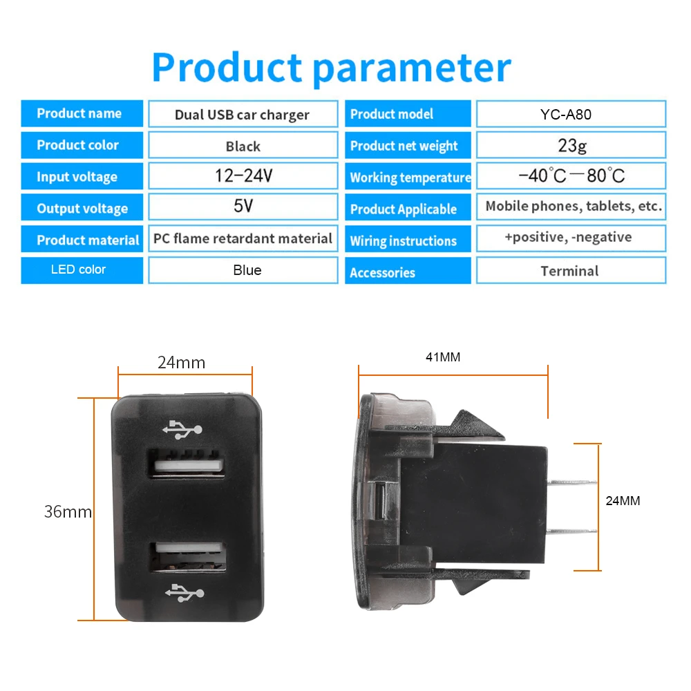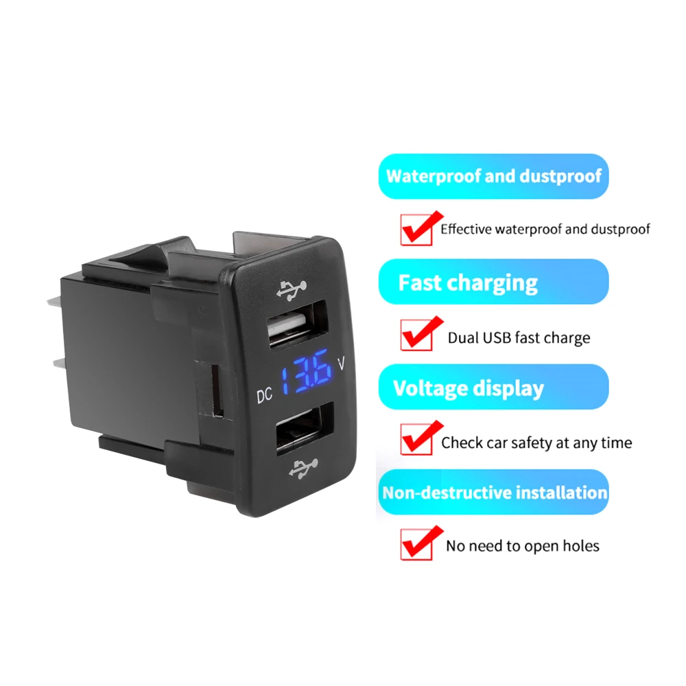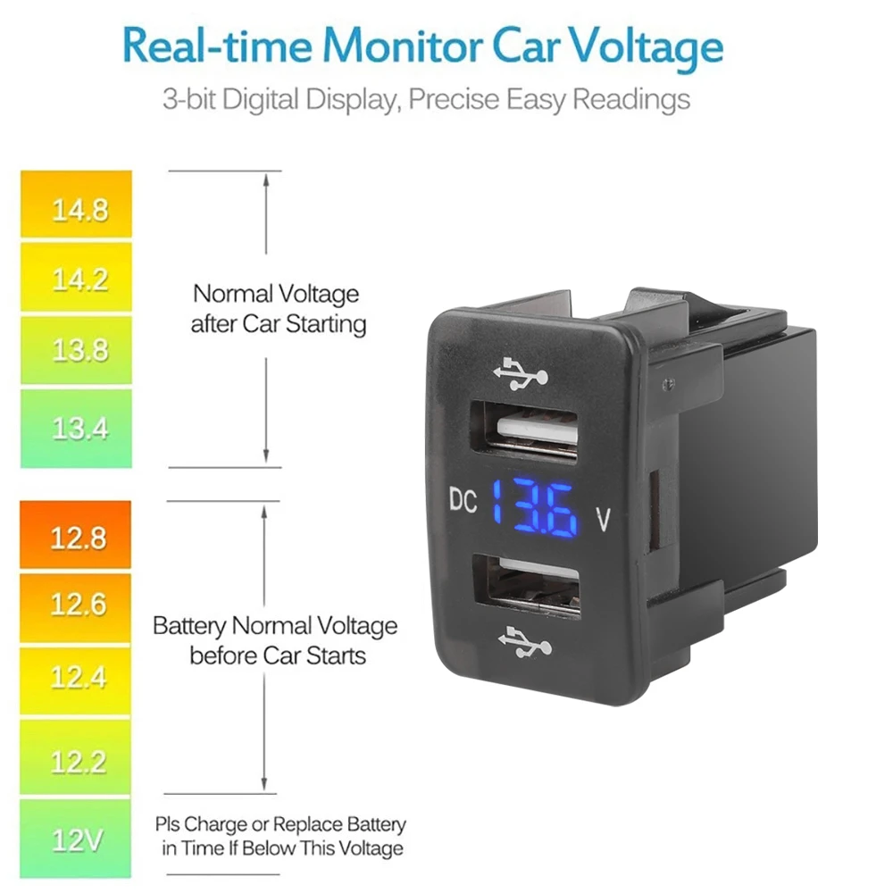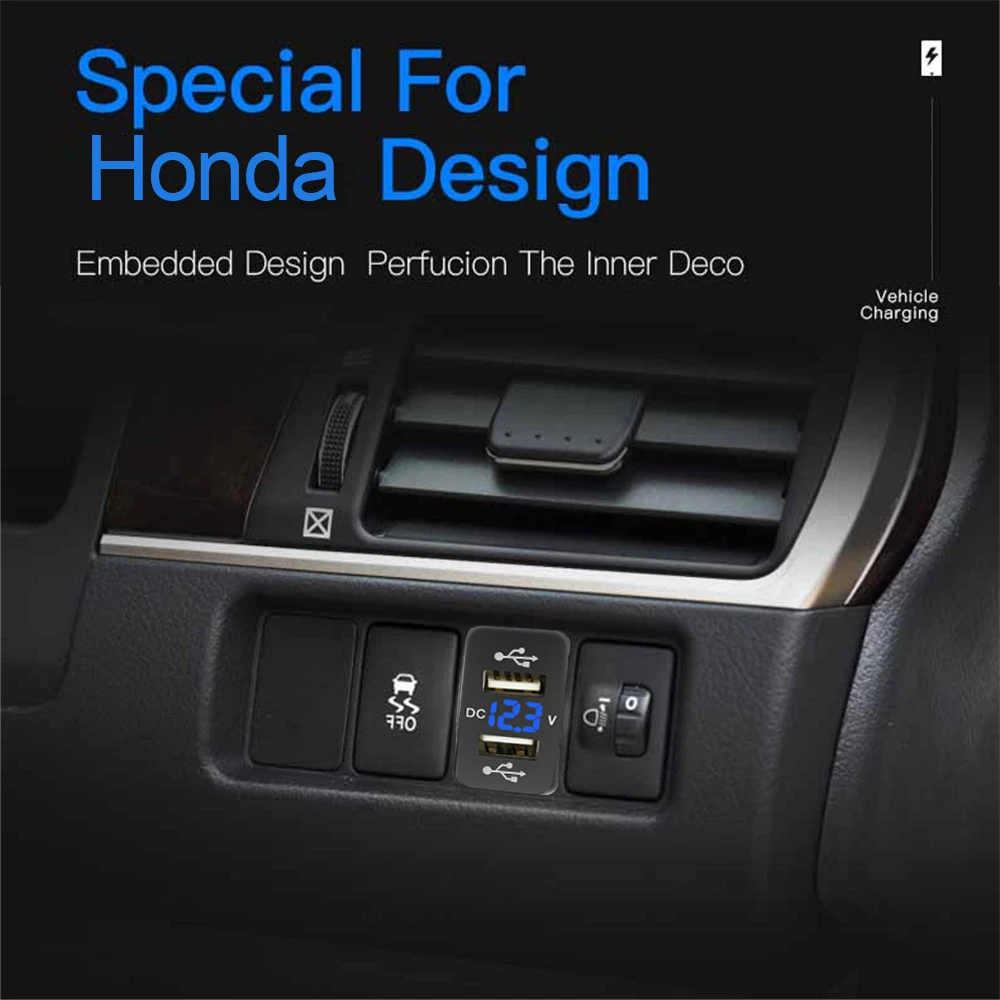 YC-A80 Dual 4.2A USB Car Charger 12V-24V 36X24mm With Voltmeter 60cm Wire Car Accessories For XIAOMI HUAWEI IPHONE Special Honda