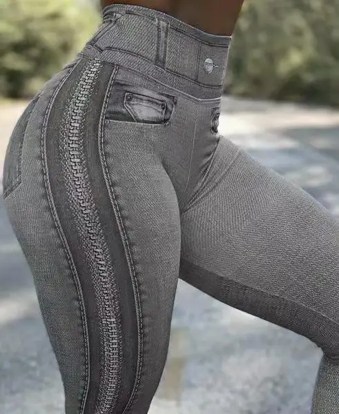 Women Leggings Jeans High Waist Running Sports Faux Denim Slim Fashion Fitness Yoga Pants Female Elastic Casual Pencil Trousers