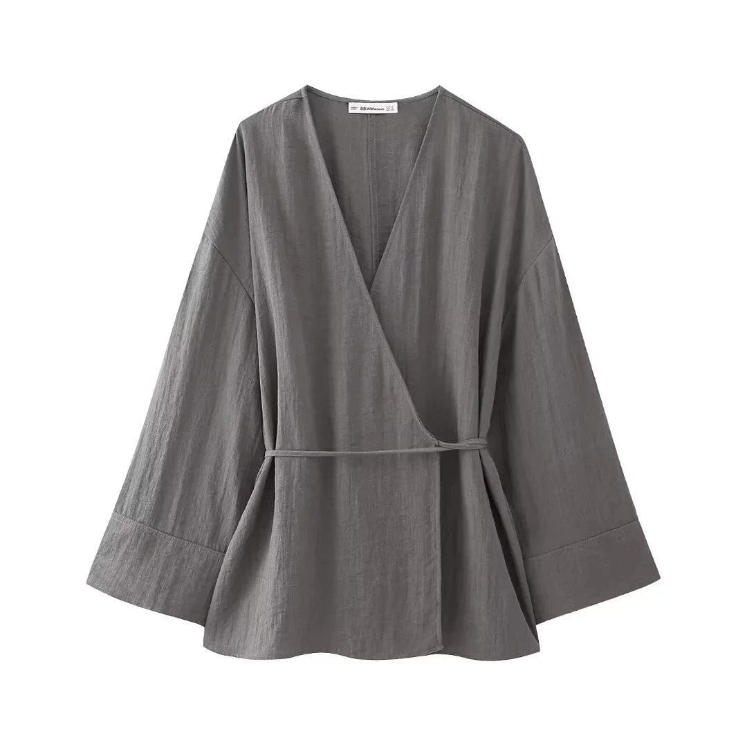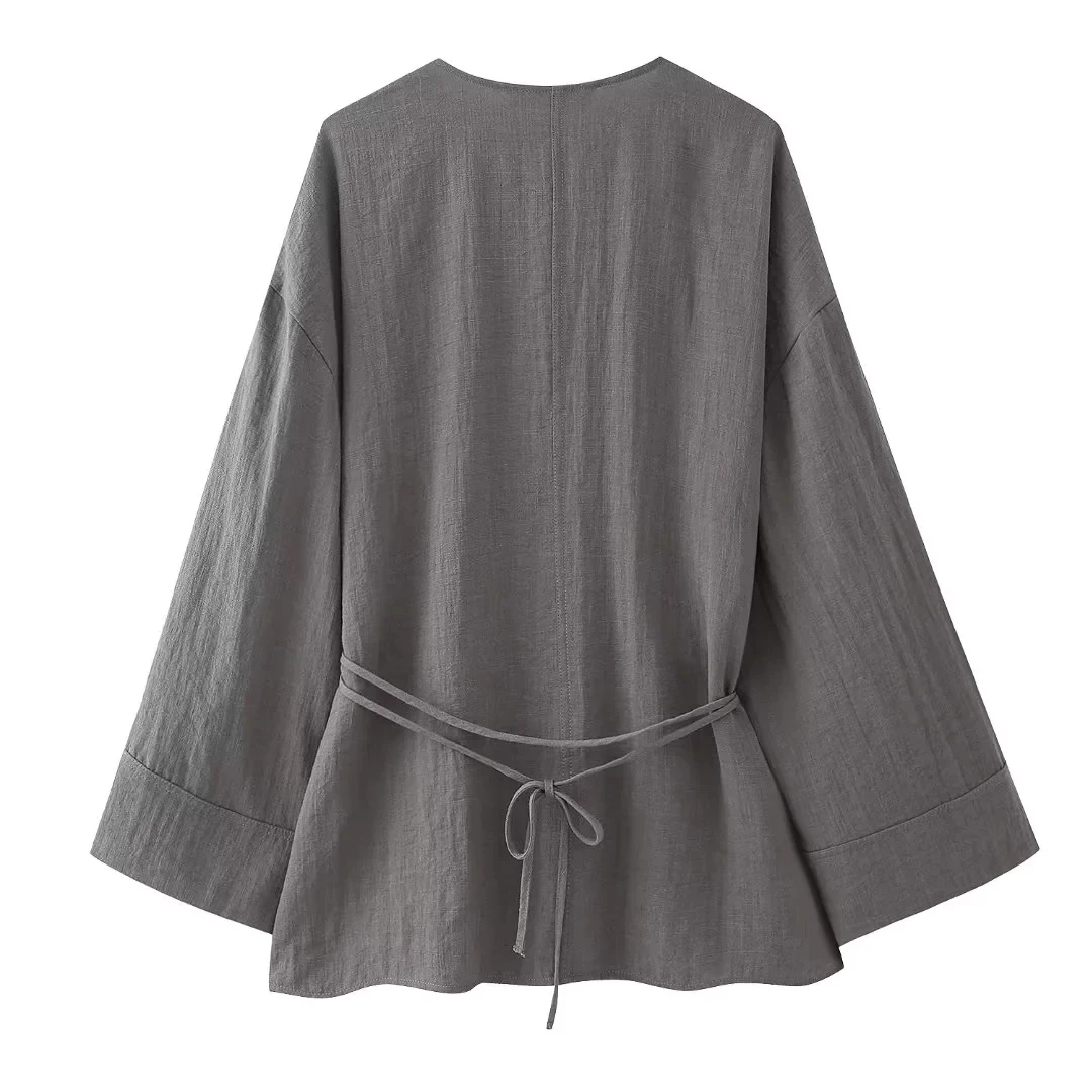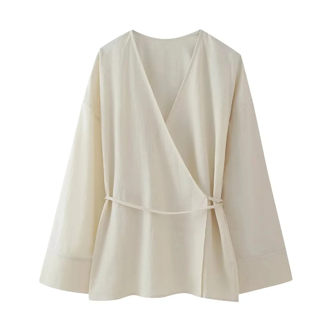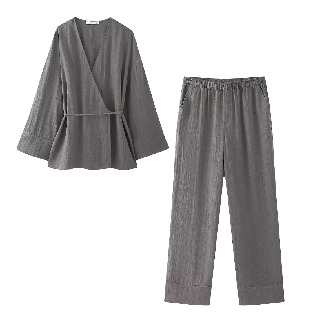 TRAF Pajama Style Pants Sets Women 2 Pieces 2024 New Fashion Kimono Style Top Women’s Suit Two Piece Set Women Outfit