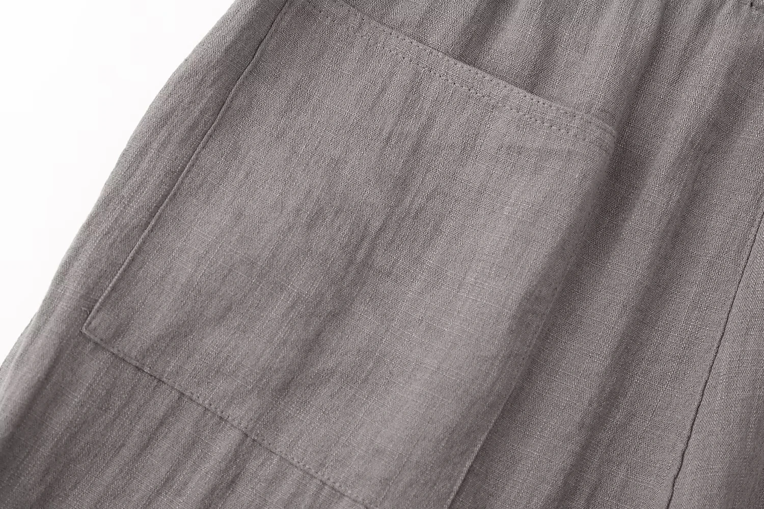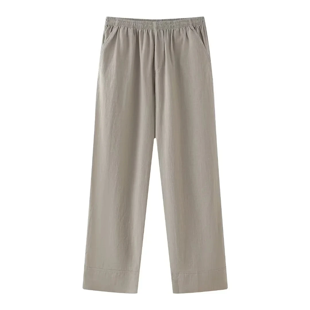 Fashion Women’s Cotton Hemp Summer Khaki Round Neck Short Sleeve Loose Top High Waist Pocket Wide Leg Pants Retro 2 Piece Set
