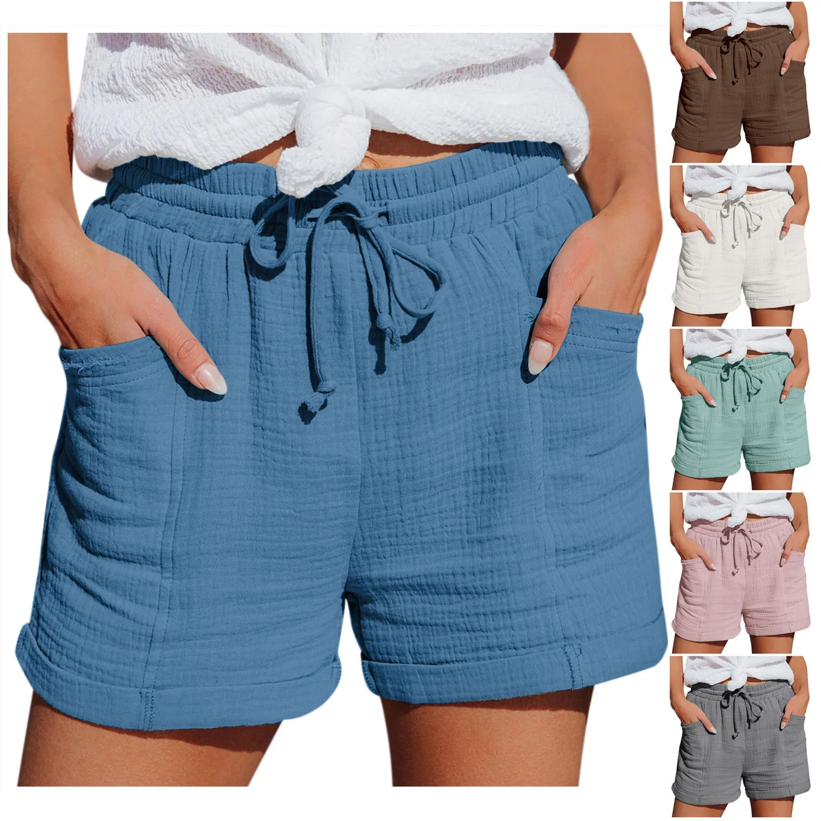 2024 New Summer Cotton Linen Casual Shorts Ladies Fashion Home Streetwear Beachwear Women Basic Short Pants Sports Trousers