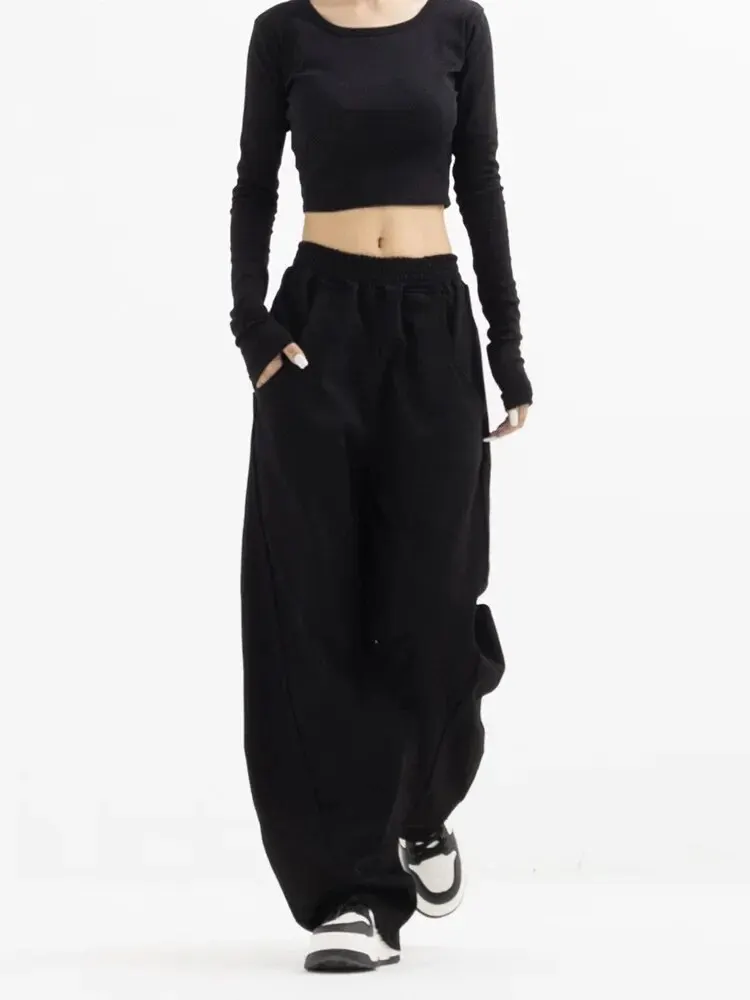 2024 New Women Casual Baggy Pants Harajuku Oversized Cargo Pants Y2K Korean Fashion Hip Hop Wide Leg Zipper Trousers Sweatpants